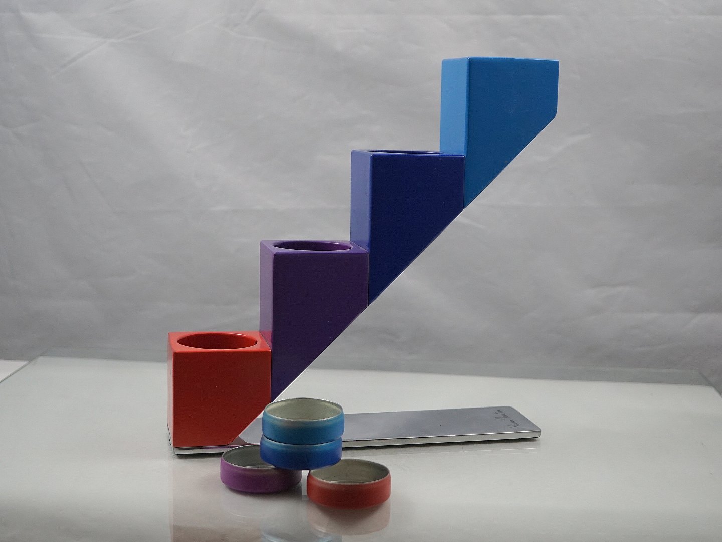 Verner Panton. Lysestage til fyrfadslys af lakeret stål, model Lighting Stairs (Trappen)