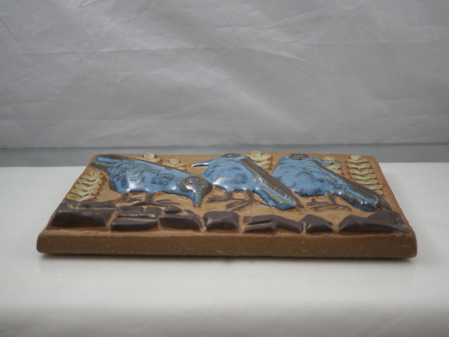 Relief i stentøj med motiv af 3 blå fugle nr. 6267