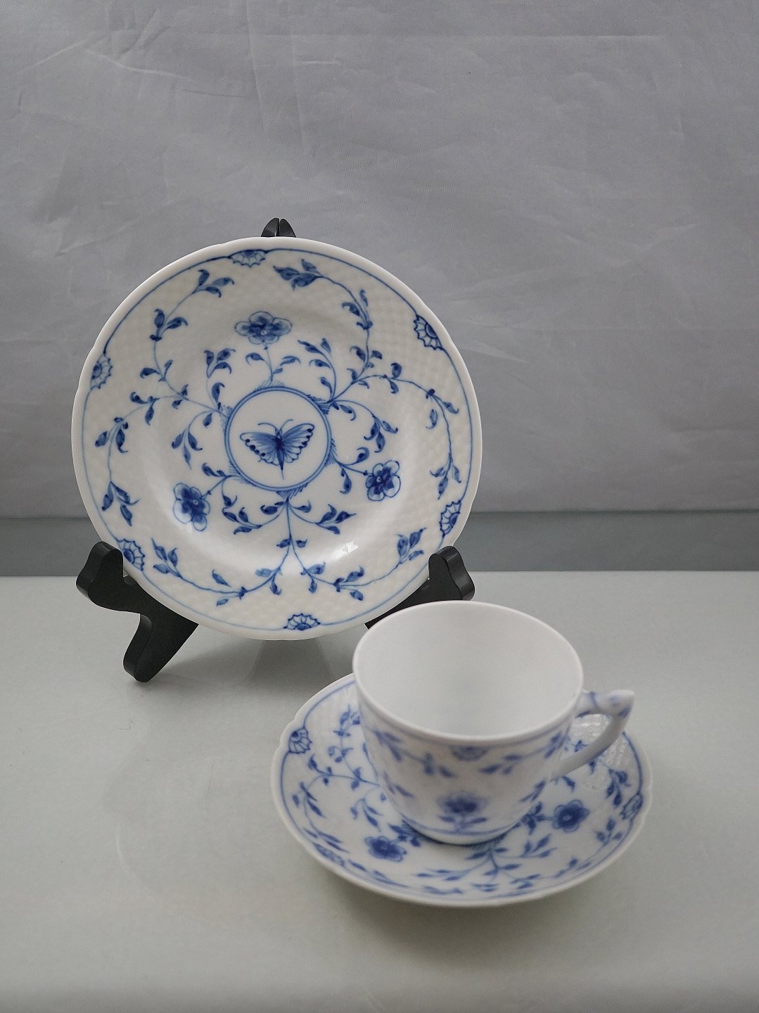Sommerfuglestellet, sommerfugle dekoration på hvidt porcelæn, spise- og kaffestel,