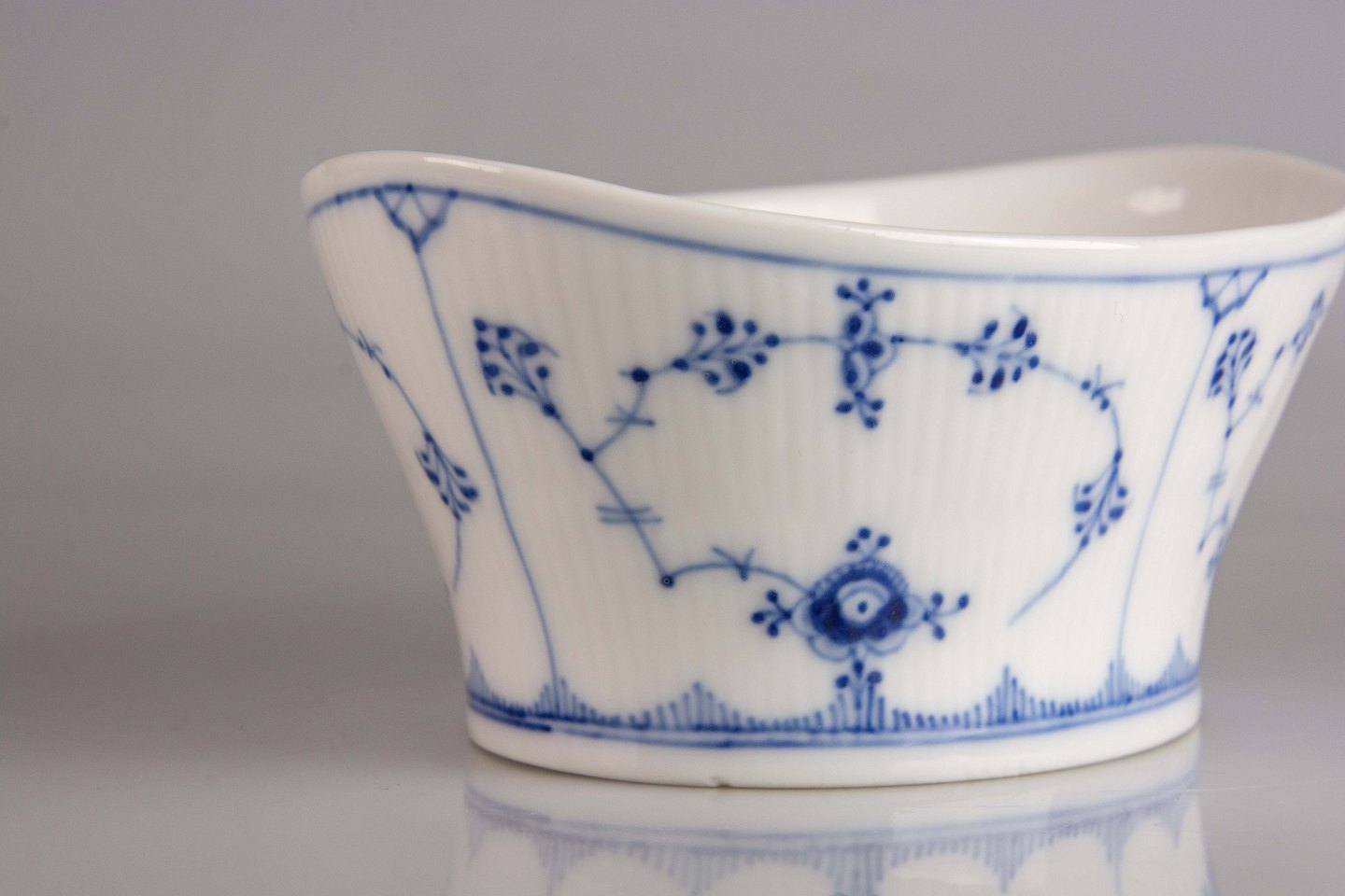 Oval skylleskål i porcelæn i serien musselmalet riflet nr. 1/485