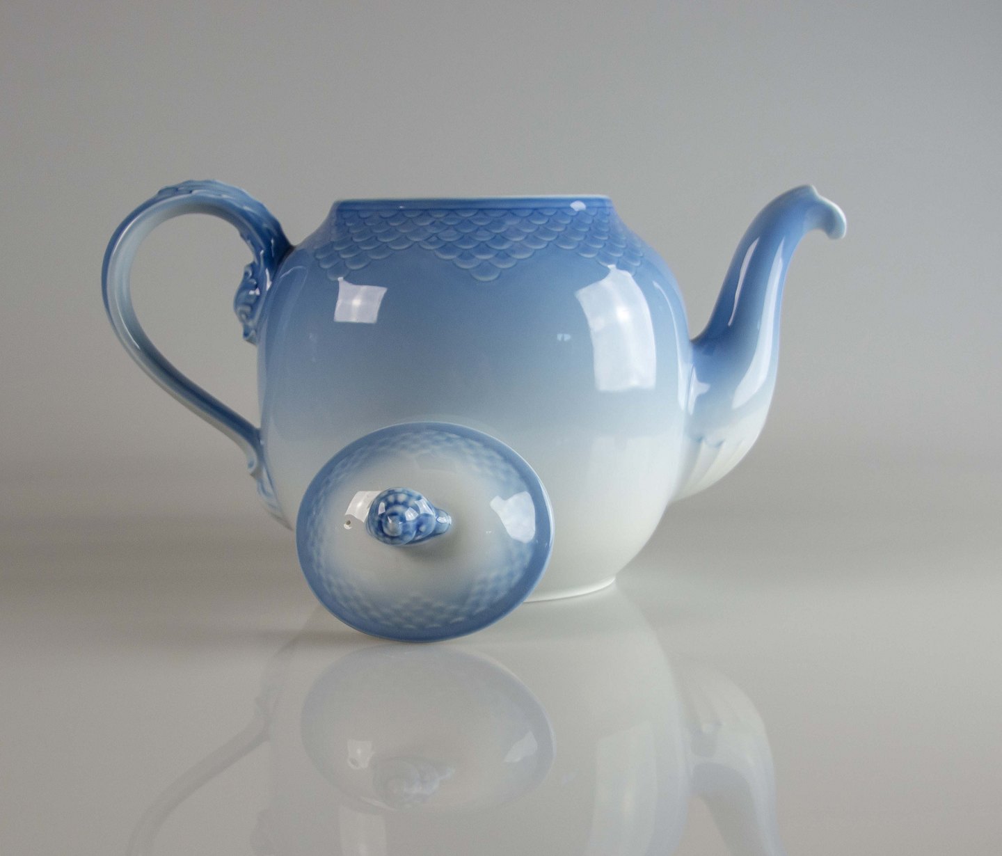 Stor tekande i porcelæn i serien Mågestel uden guldkant nr. 238