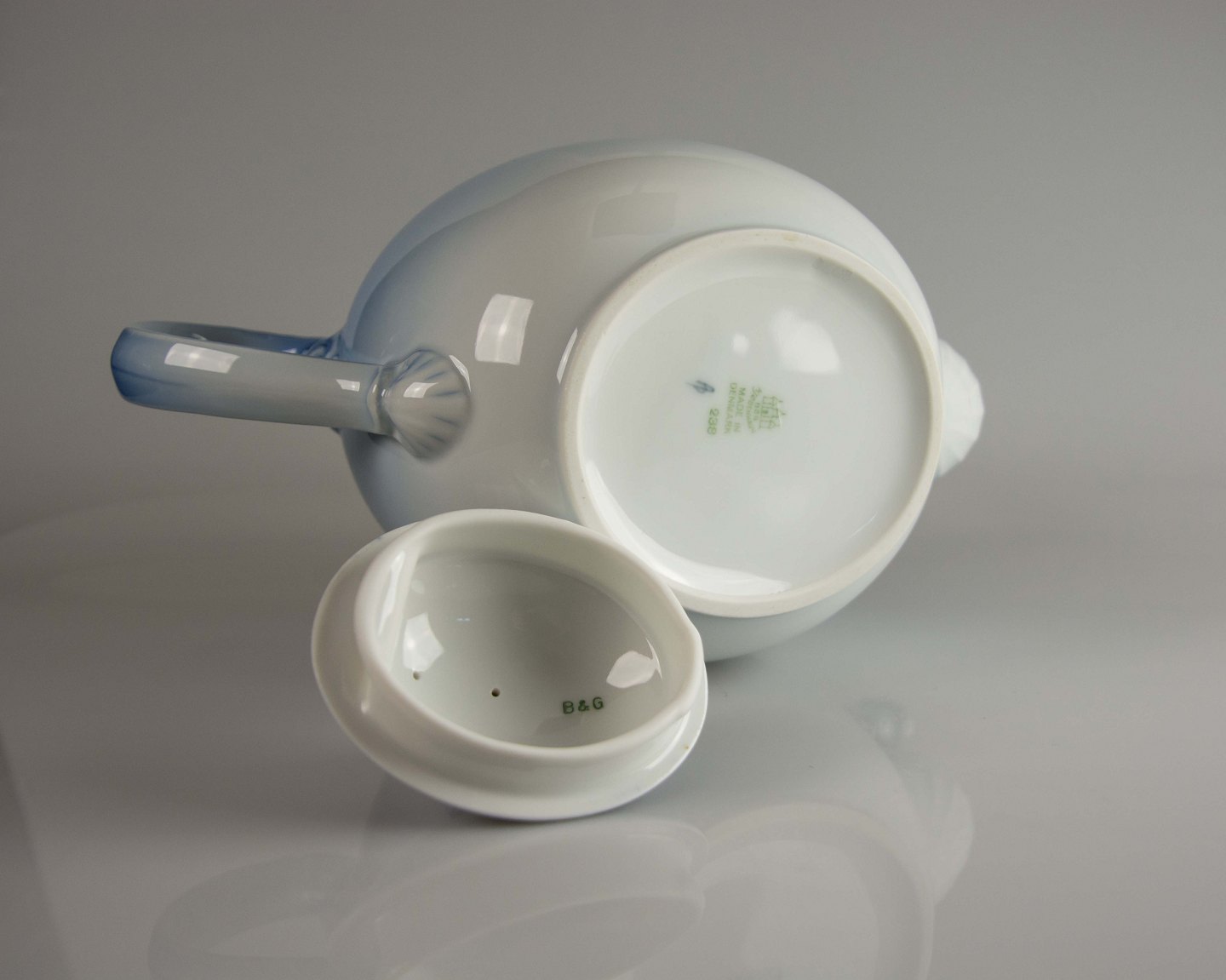 B&G tekande nr. 238, Bing og Grøndahl tepotte, B&G mågestel kande, Bing og Grøndahl mågestel tekande, B&G måge,