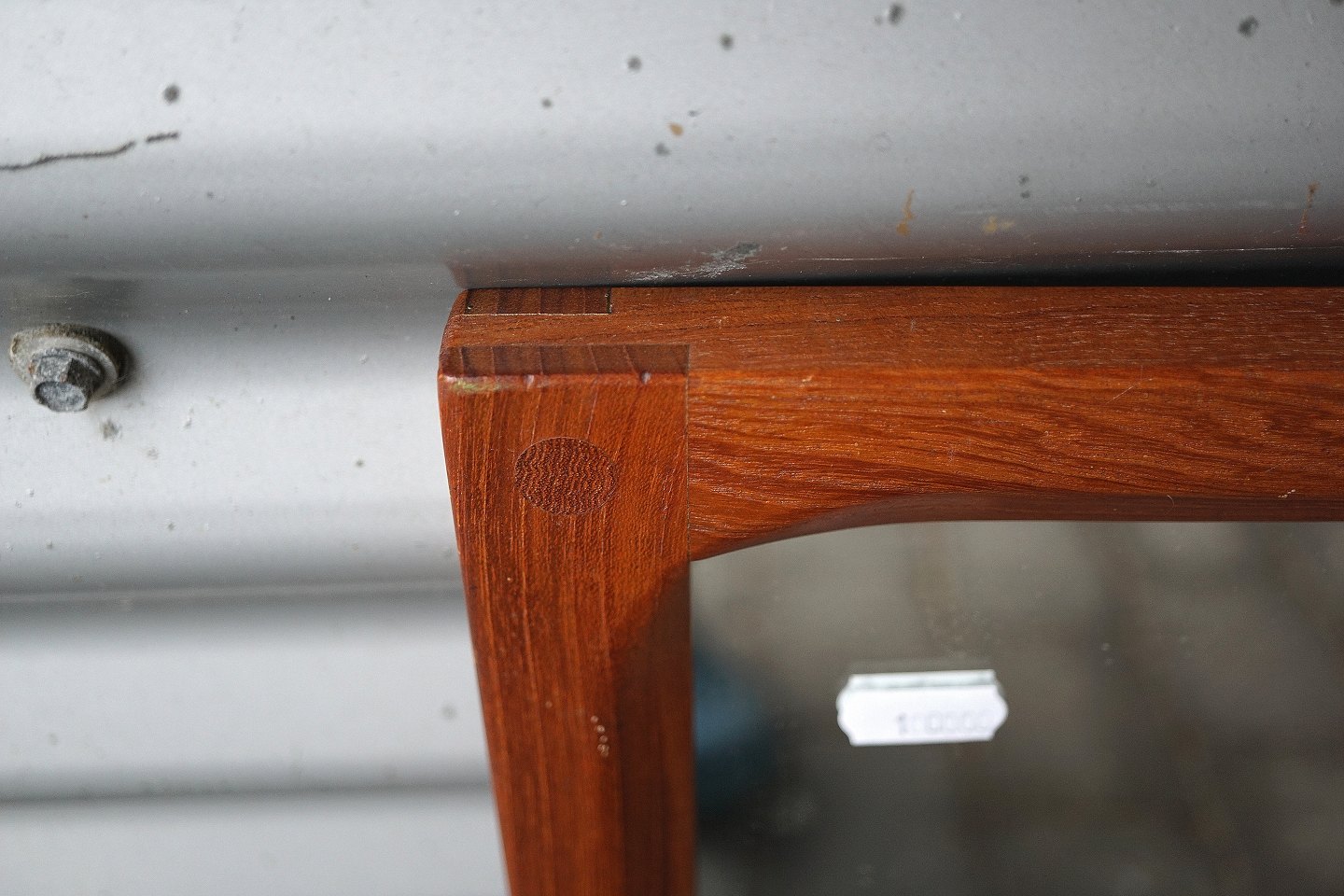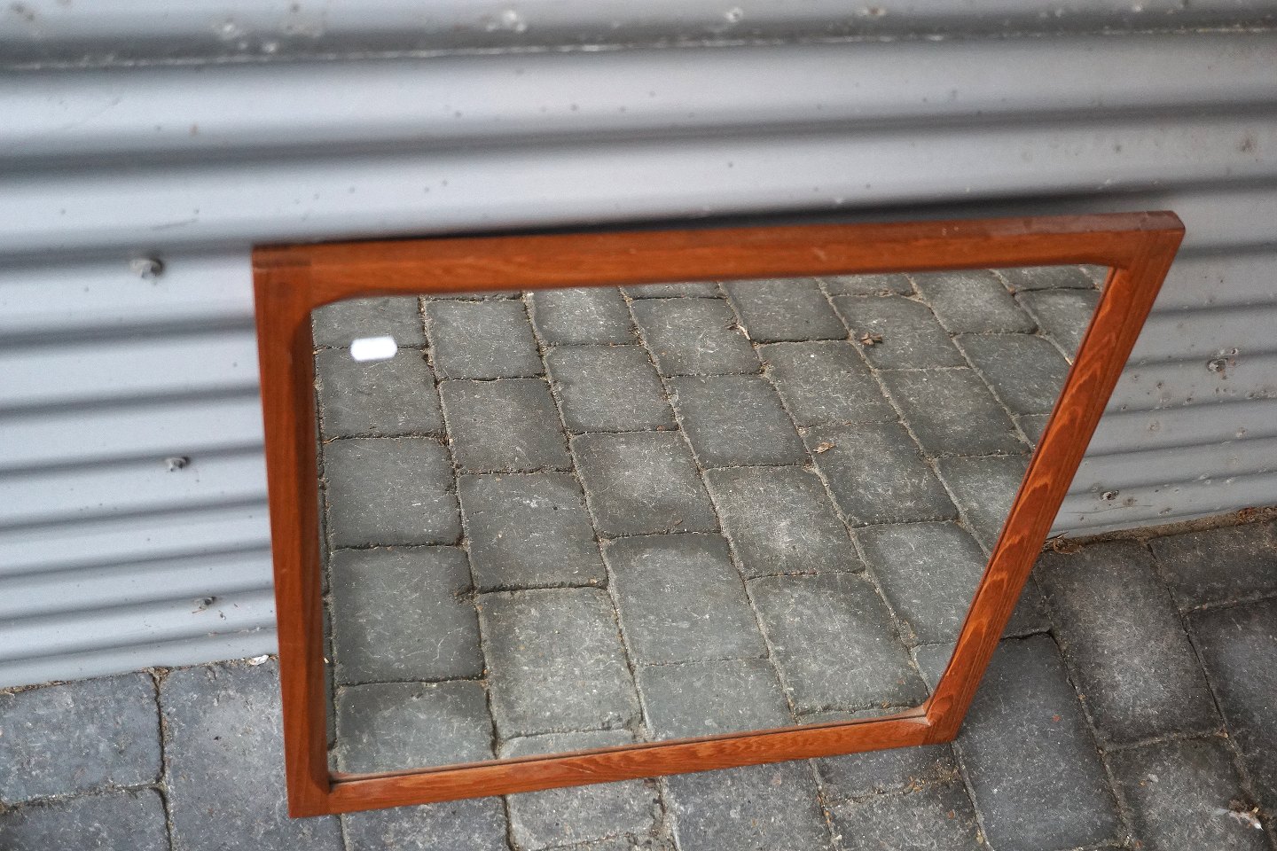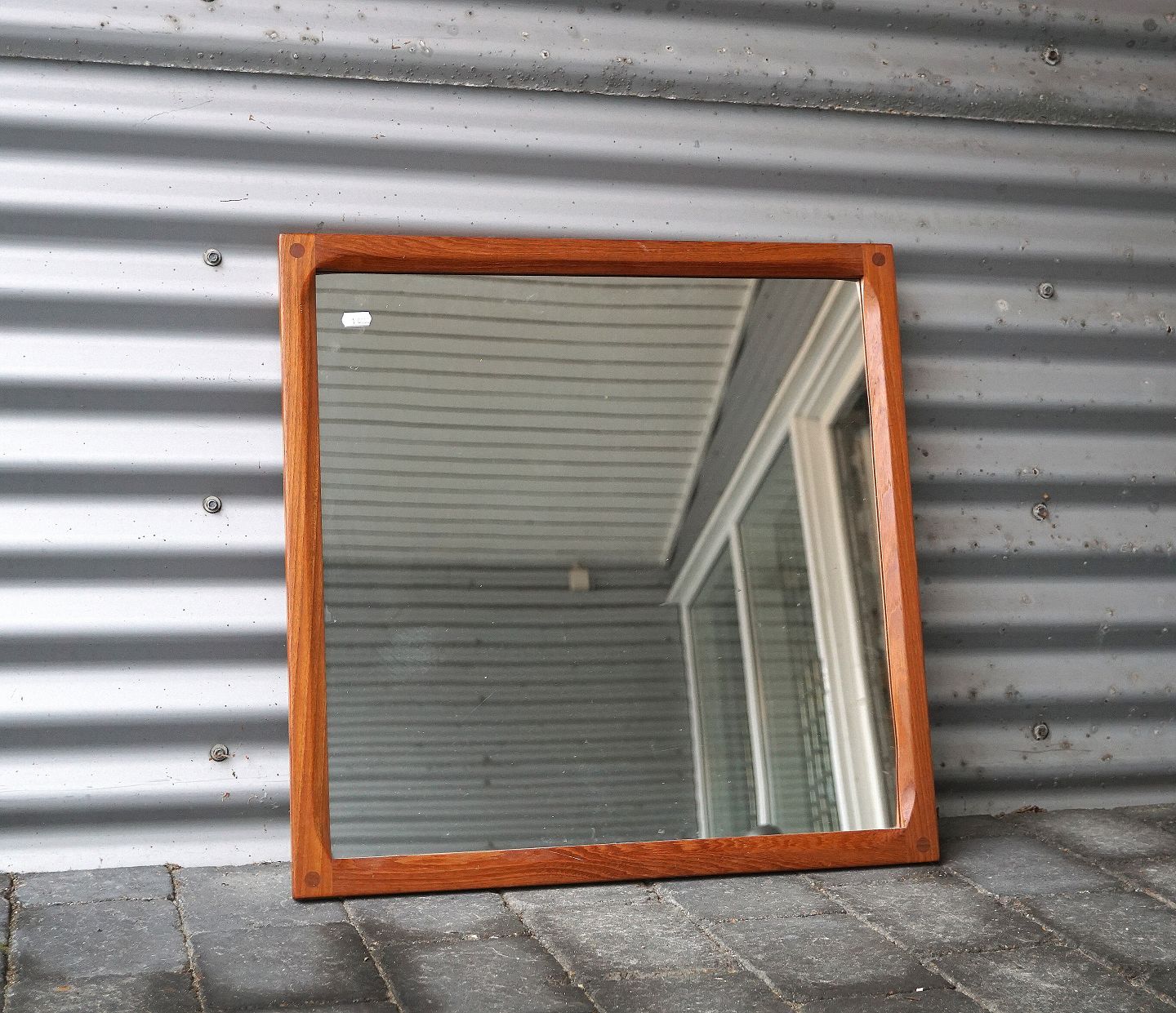 4-kantet spejl med teaktræsramme. Spejlet er solgt fra Max Jessen