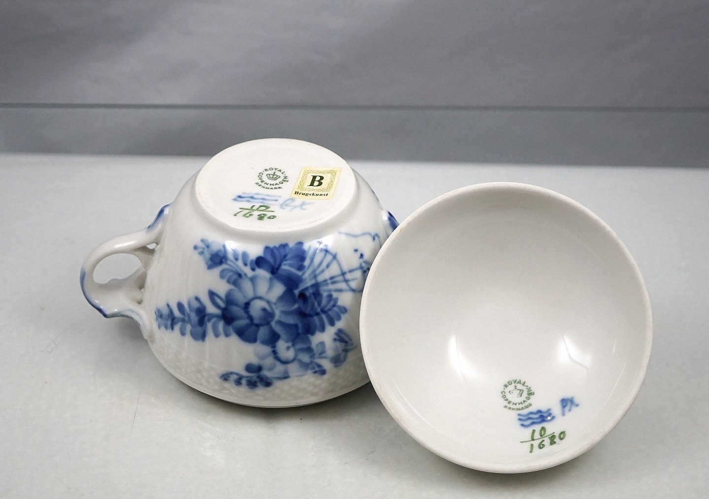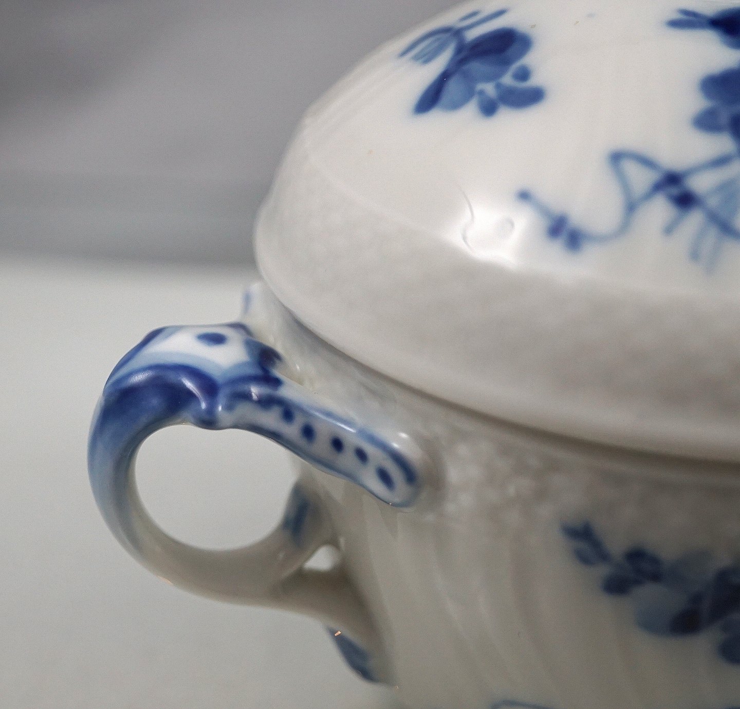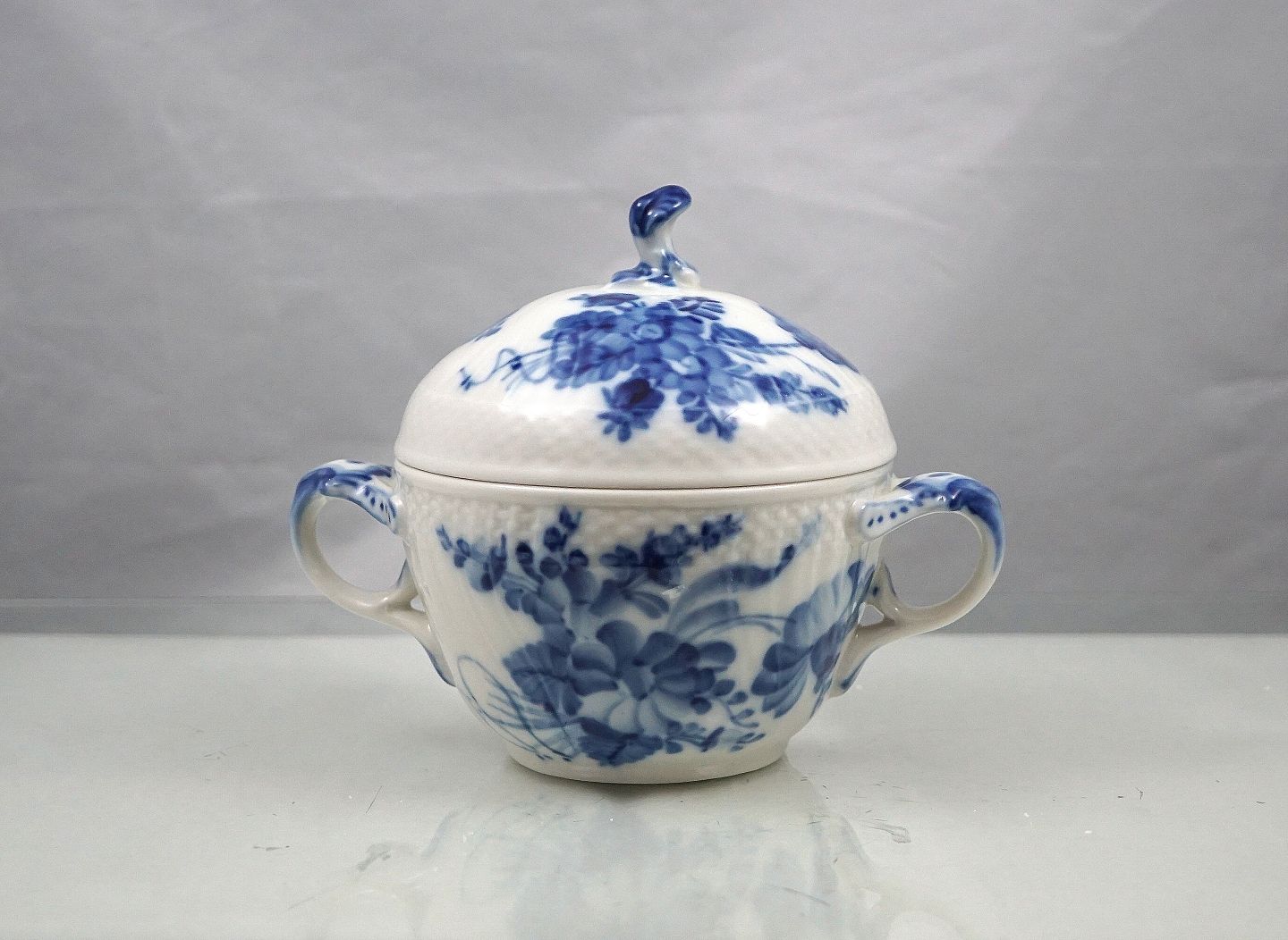 Royal Copenhagen svejfet Blå blomst. Sukkerskål med låg, nr. 10/1680. Sukkerskålen er 1. sortering