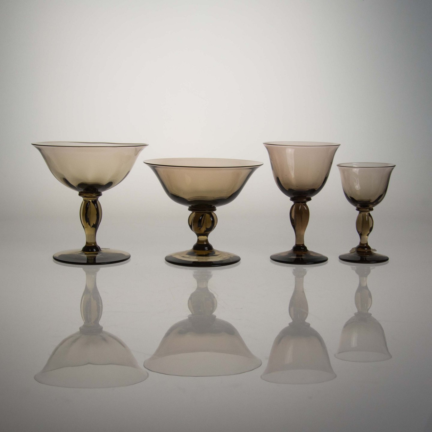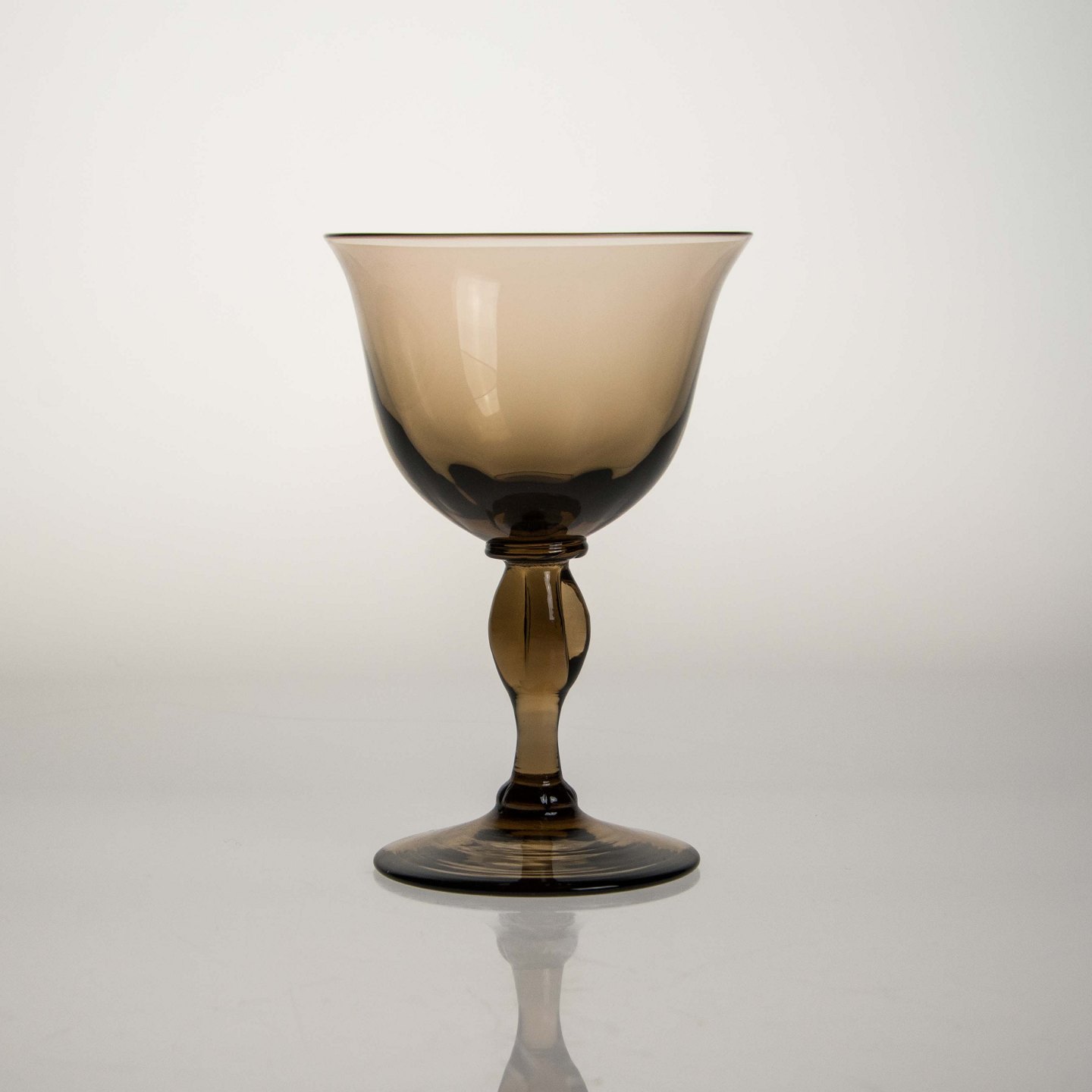 Røgfarvet/brunlige glas med dekorativ fod.