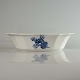 Kantet og oval skål i porcelæn med dekoraktion af blå blomst.