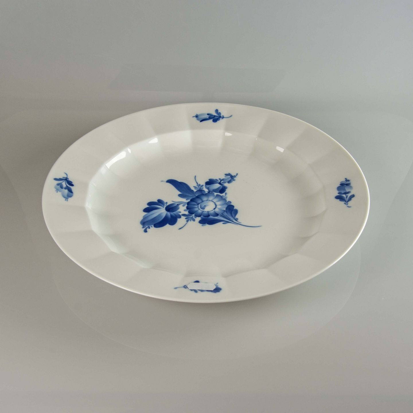 Blå blomst kantet stort rundt fad i porcelæn nr. 10/8543