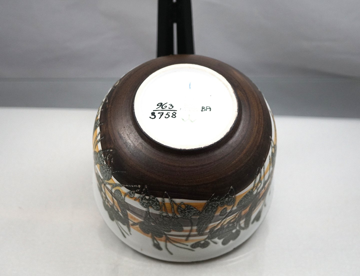 Royal Copenhagen. Fajance urtepotte, nr. 963/3758. Urtepotten er hvid og der er malet fantasi blomster på den, i brunlige og gullige farver