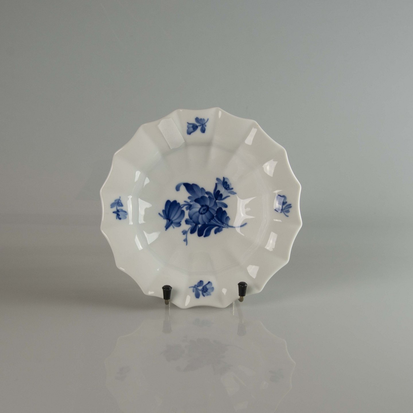 Blå blomst kantet lille rund kageskål nr. 10/8555