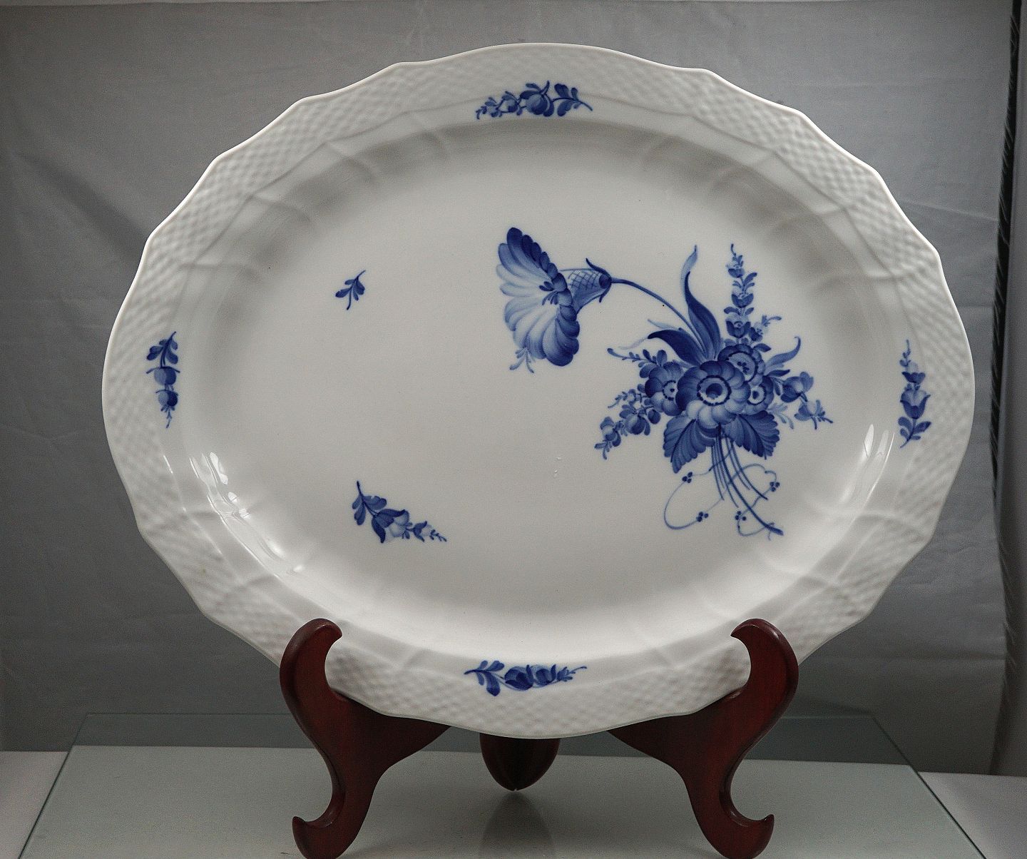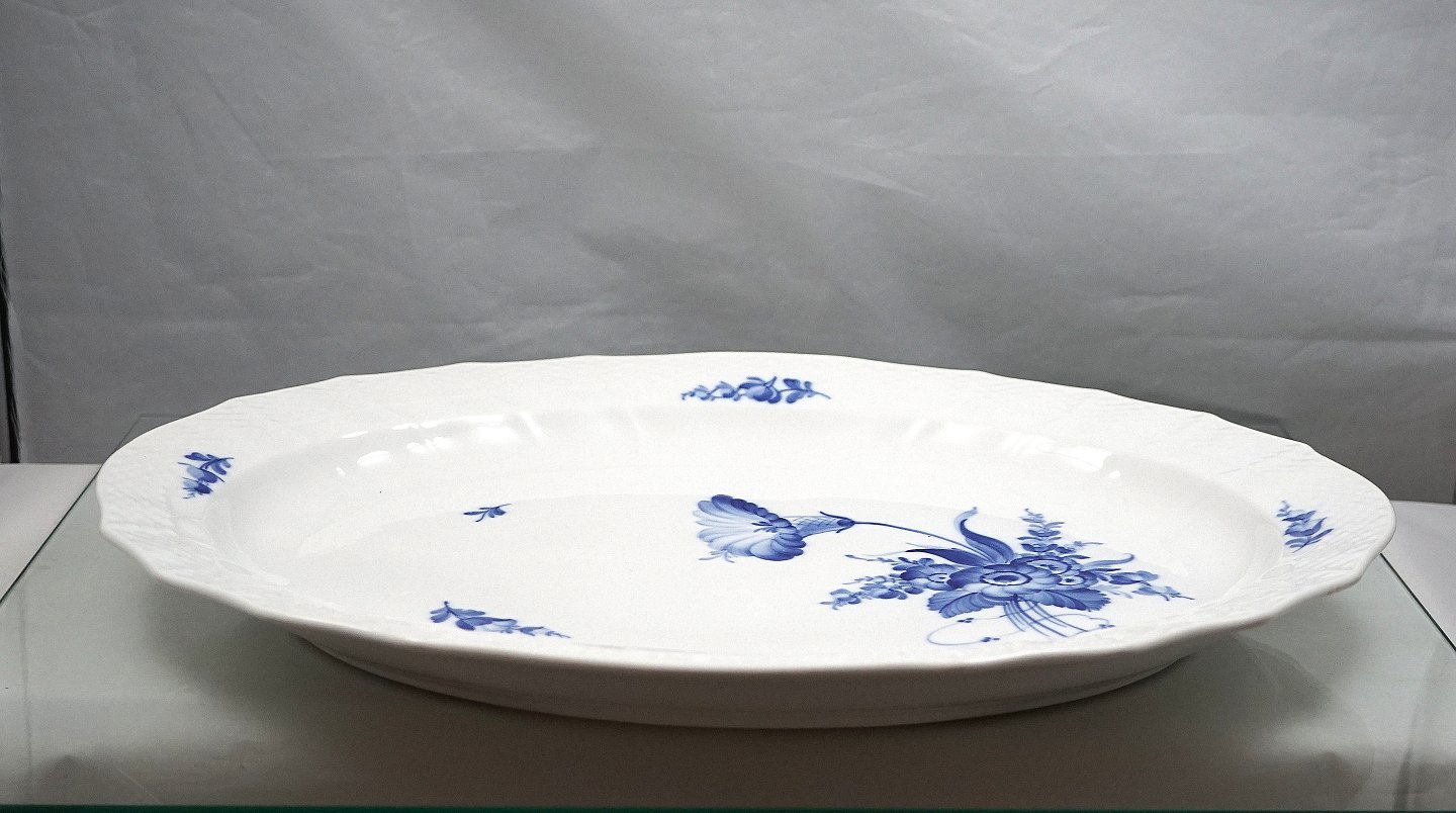 Royal Copenhagen. Blå blomst, nr. 10/1557, stegefad med flettet-kant.