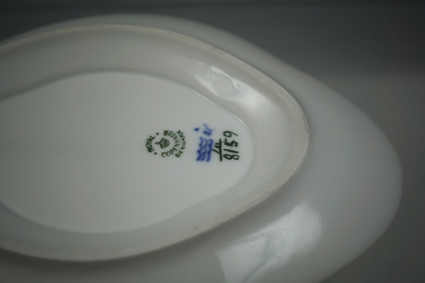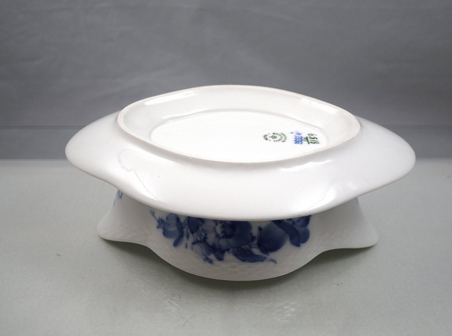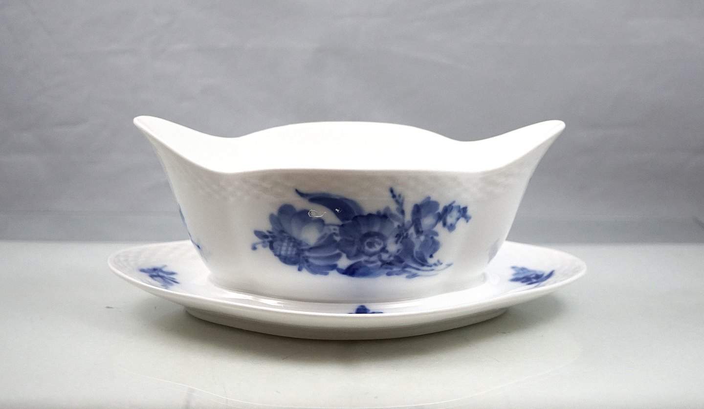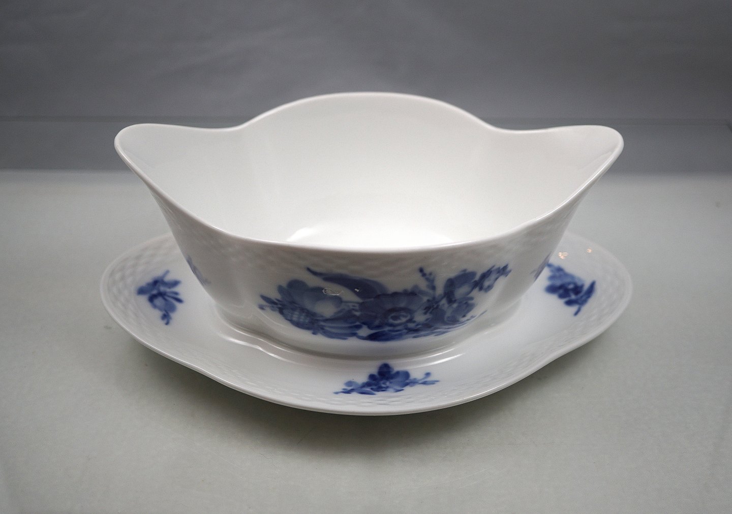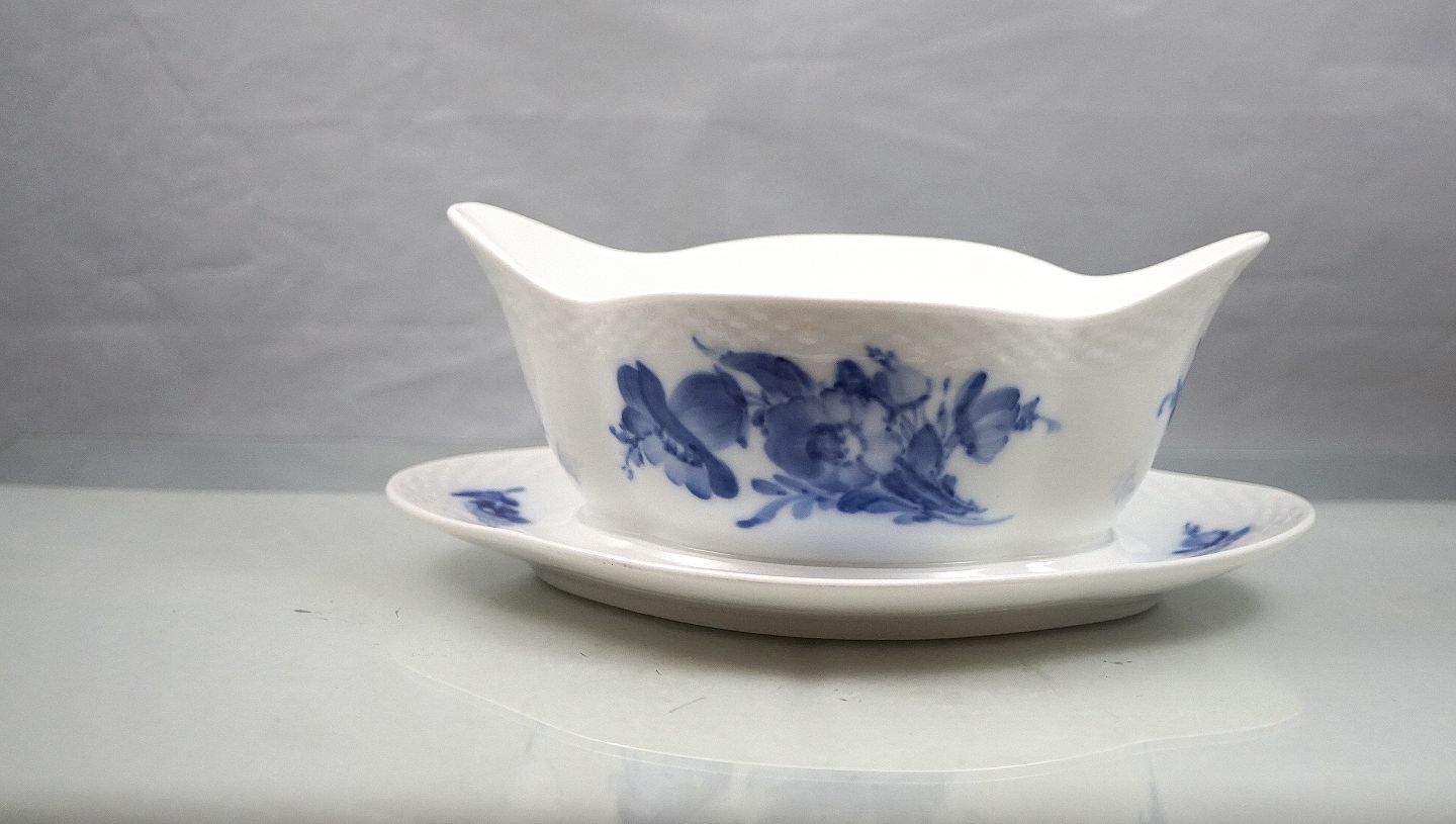 Royal Copenhagen Flettet Blå blomst, sauceskål nr 10/8159 1. sortering. Royal Copenhagen begyndte at producere Blå Blomst i 1799, det blev stel nr 10. Produktionen ophørte i 2000