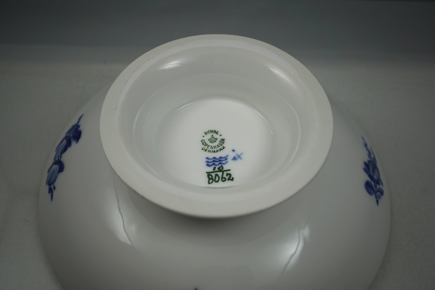 Royal Copenhagen. Blå blomst, nr 10/8062 kageopsats. Opsatsen er med flettet kant. 1. sortering. Royal Copenhagen begyndte at producere Blå Blomst i 1799, det blev stel nr 10. Produktionen ophørte i 2000