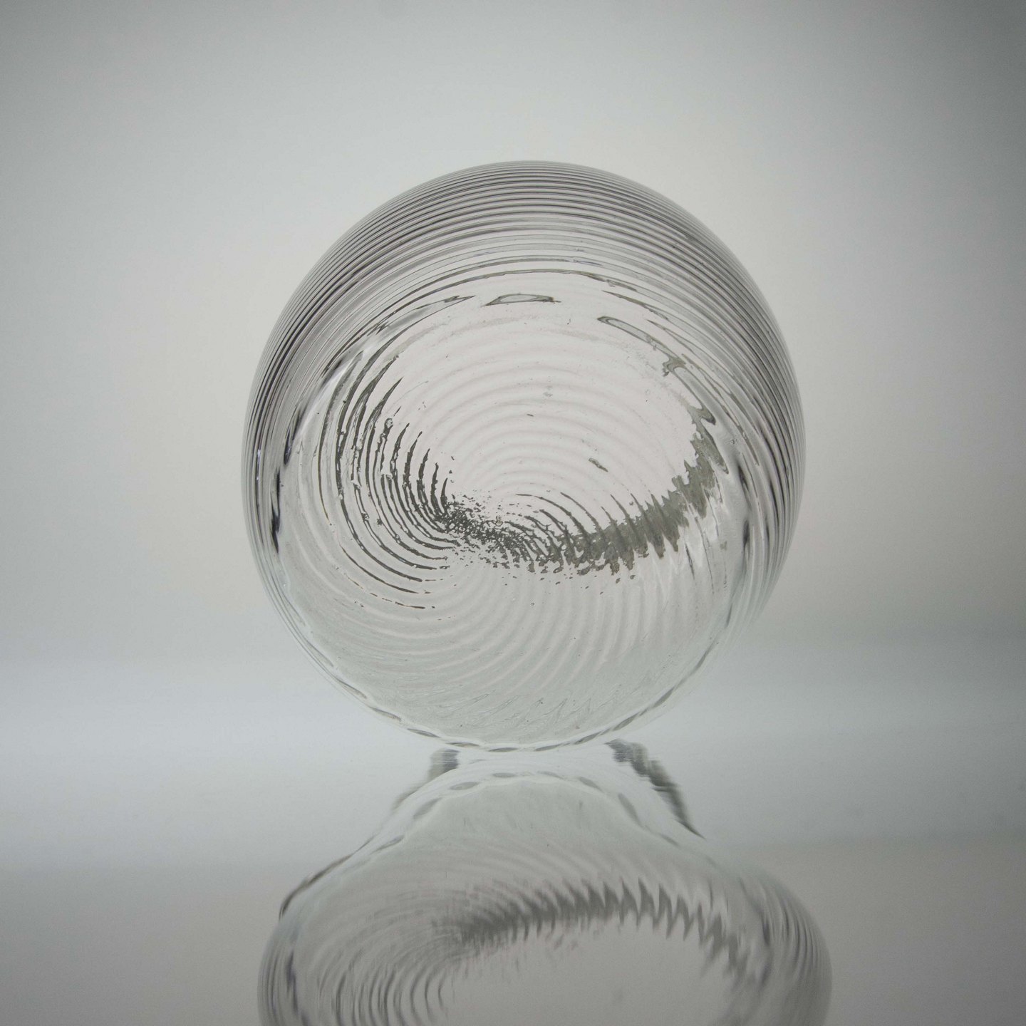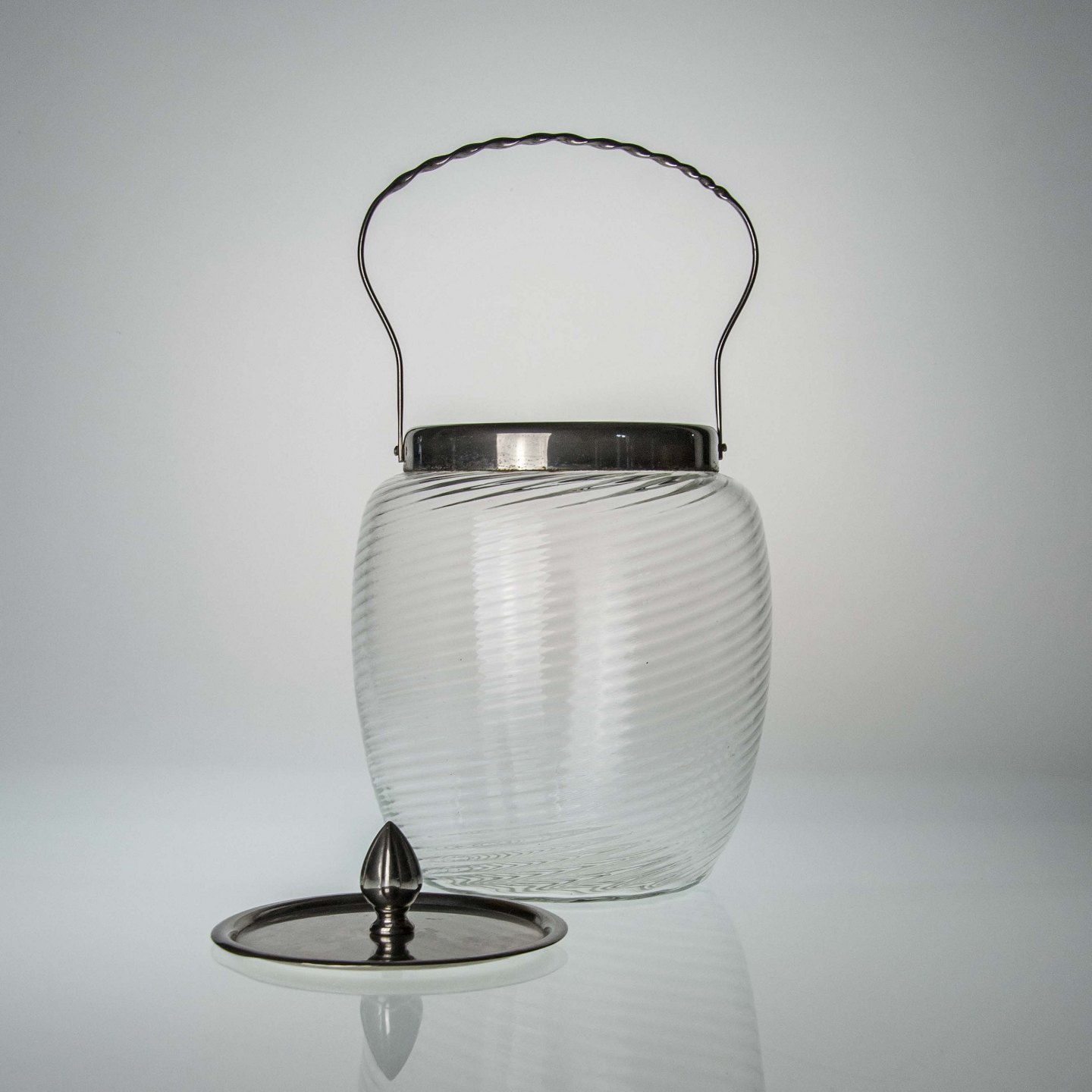 Kiksespand i rillet glas med metal låg og hank model nr. 2147