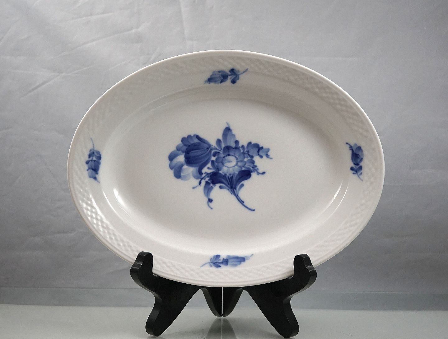 Royal Copenhagen. Blå blomst, nr. 10/8015, ovalt serveringsfad. Fadet er 1.sortering