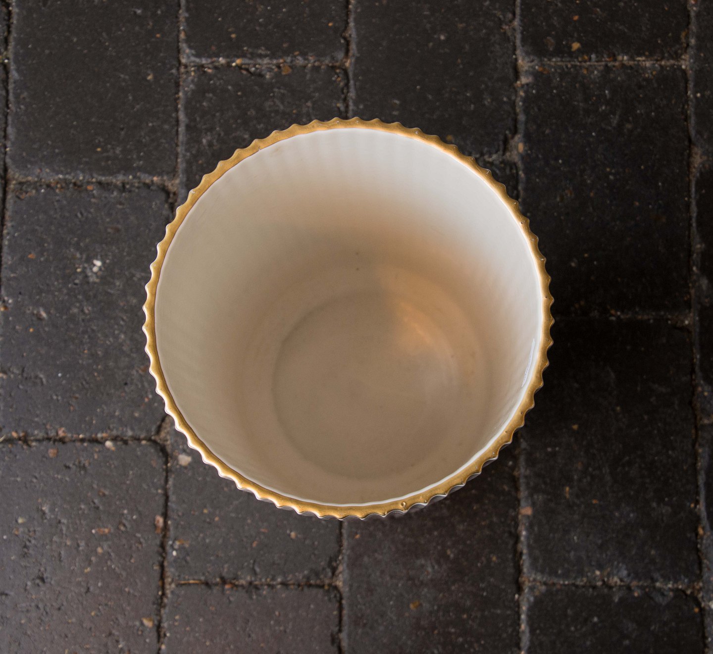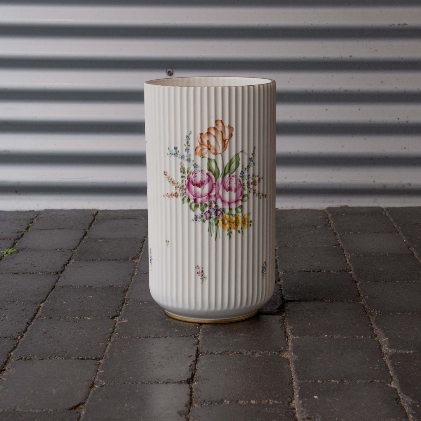Lyngby vase i riflet porcelæn med guldkant og blomstermotiv nr. 4037