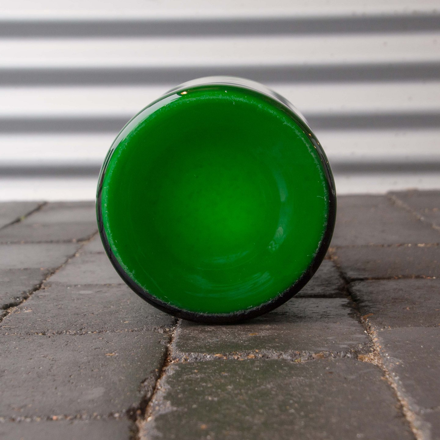 Stor gulvvase med inderside i opalhvid glas og grønt overlagsglas