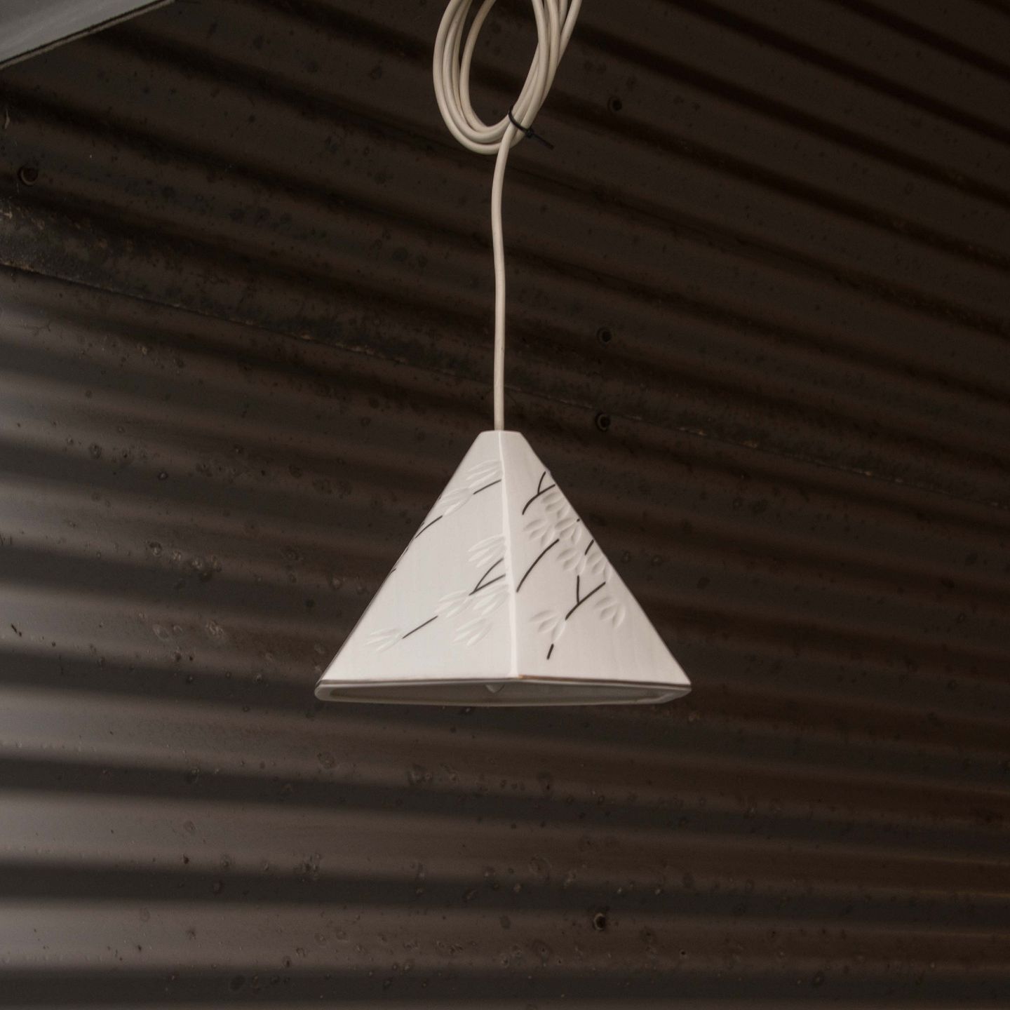 Luciana pendel i hvidt porcelæn med mønster og sølvkant
