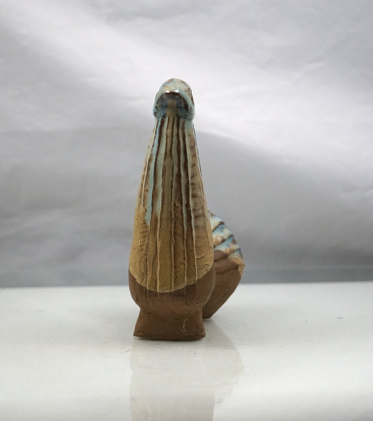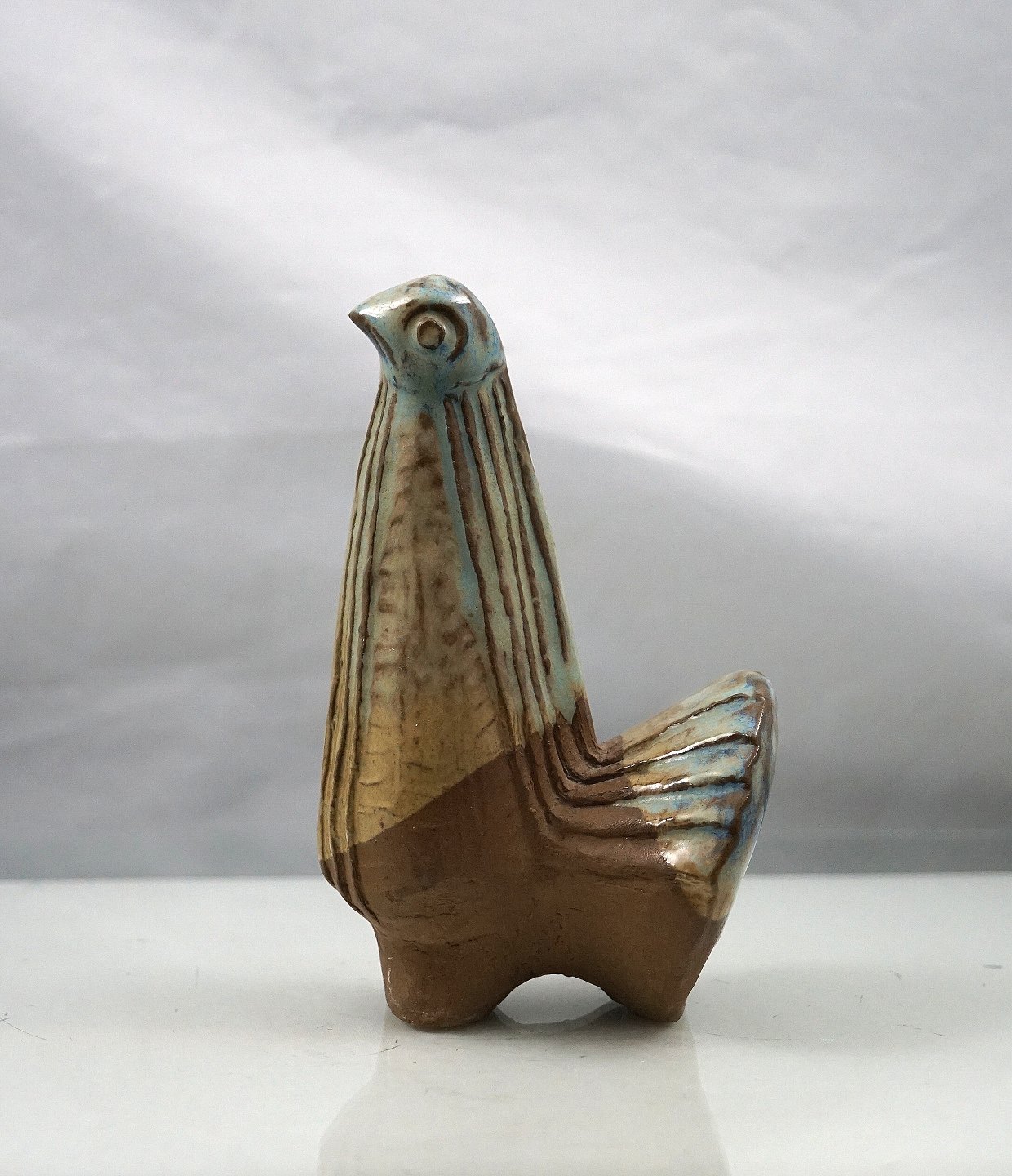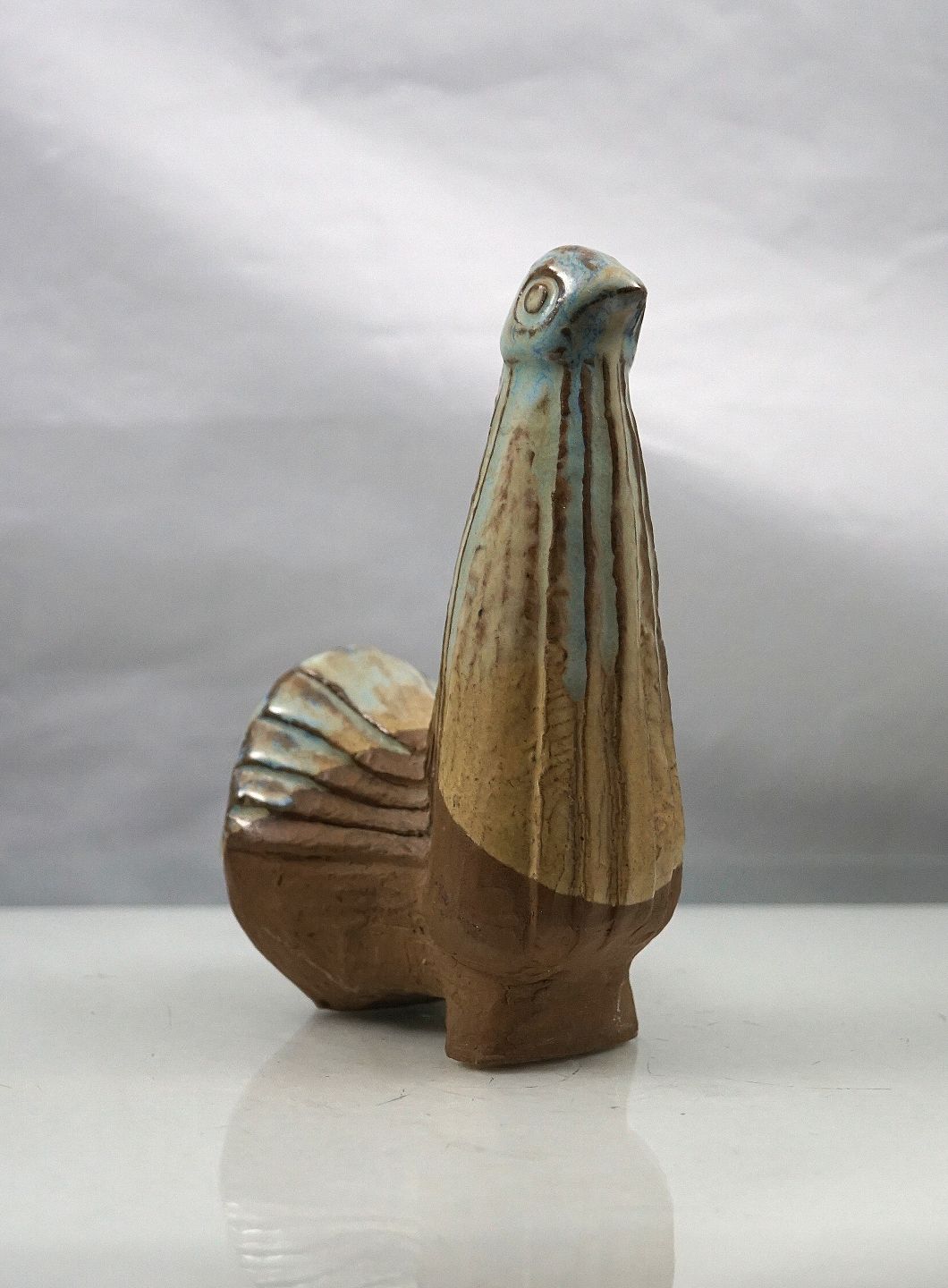 Figur af fantasi fugl i keramik. Fuglen er delvis med glasur