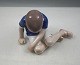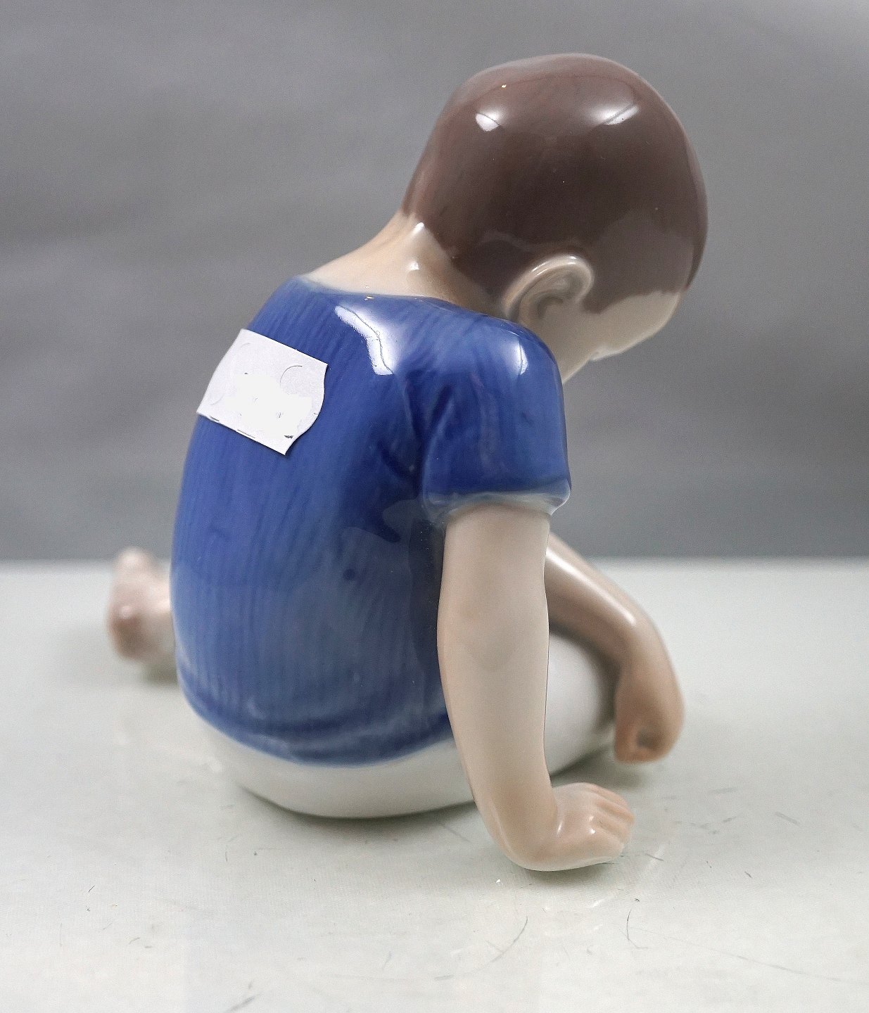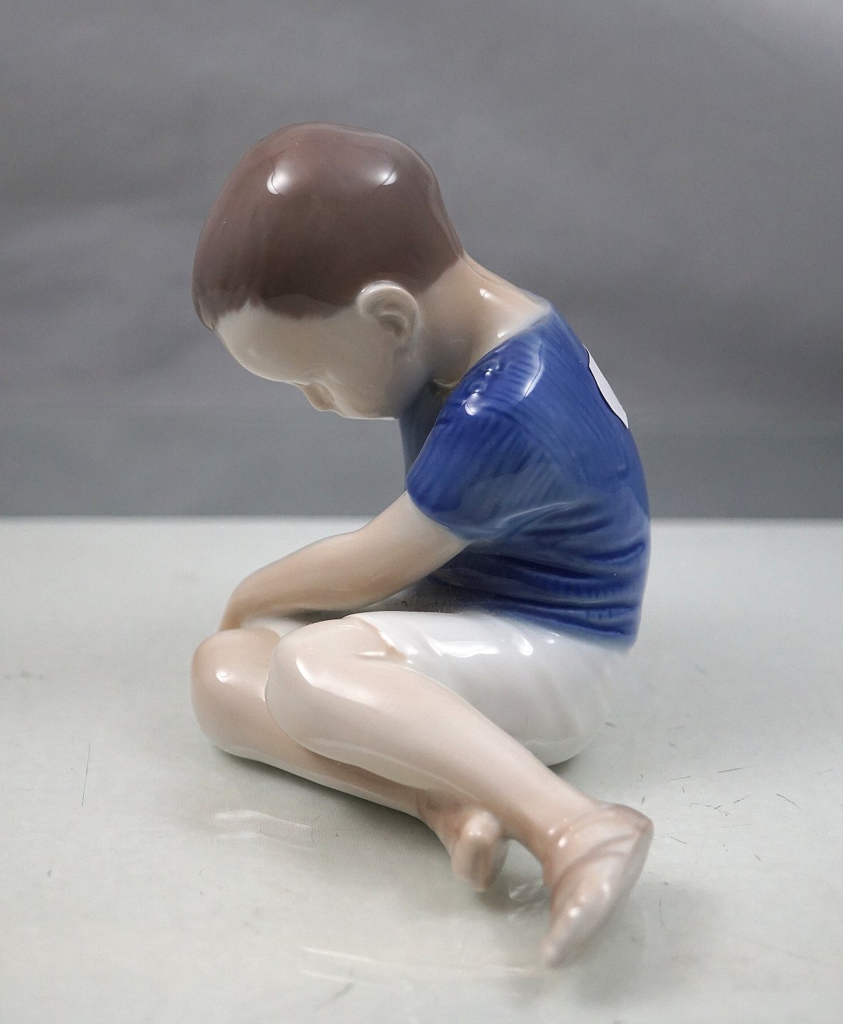 Bing & Grøndahl, Siddende dreng med blå trøje. Figuren er 1. sortering no 1671