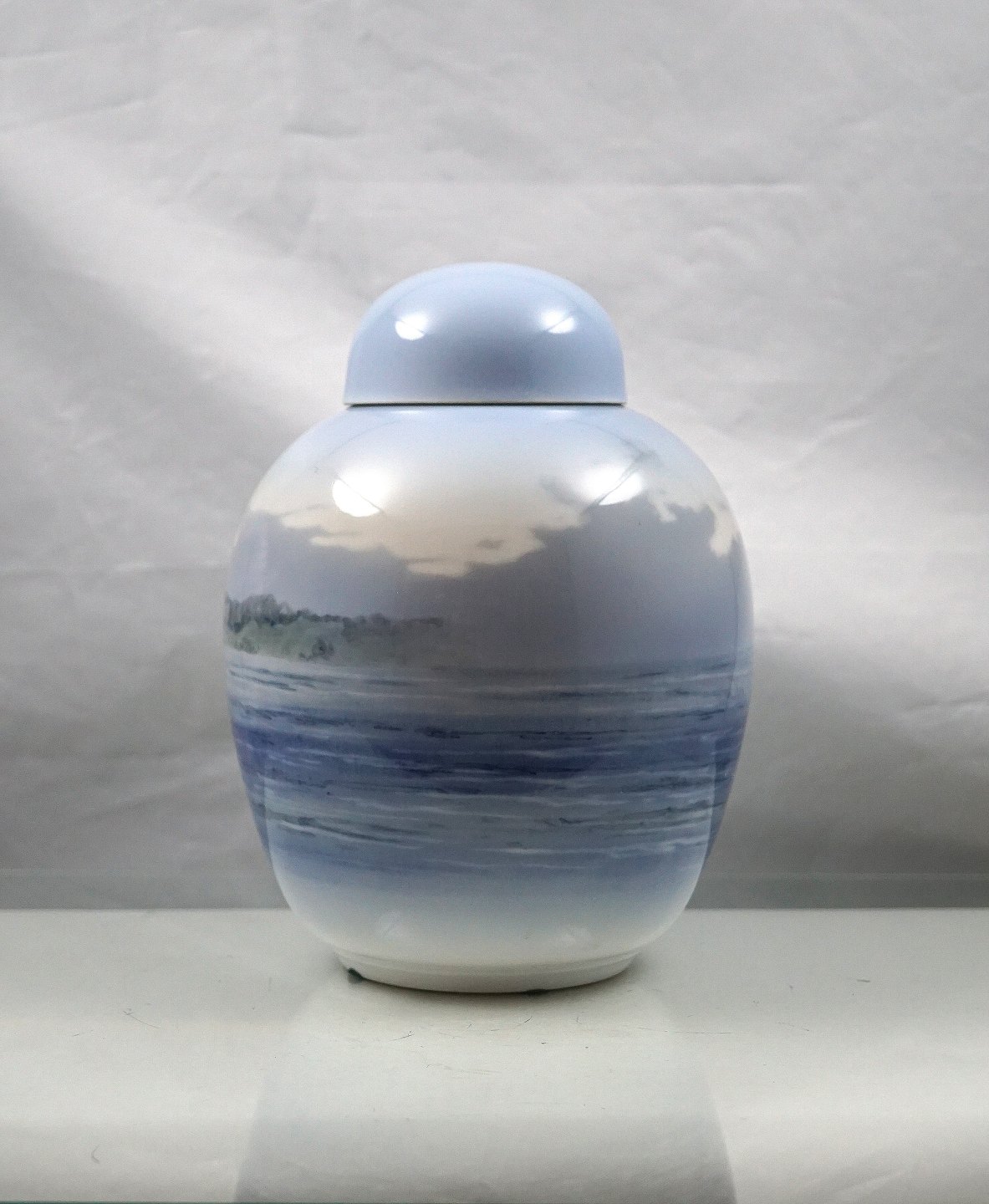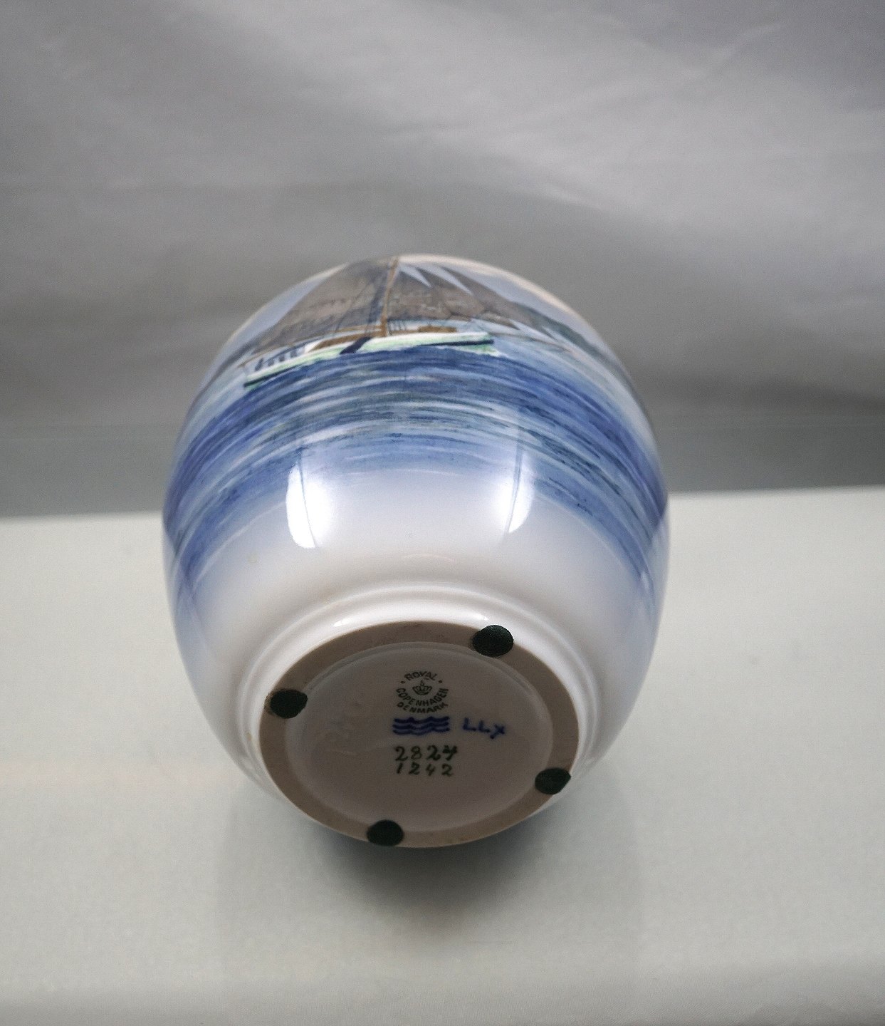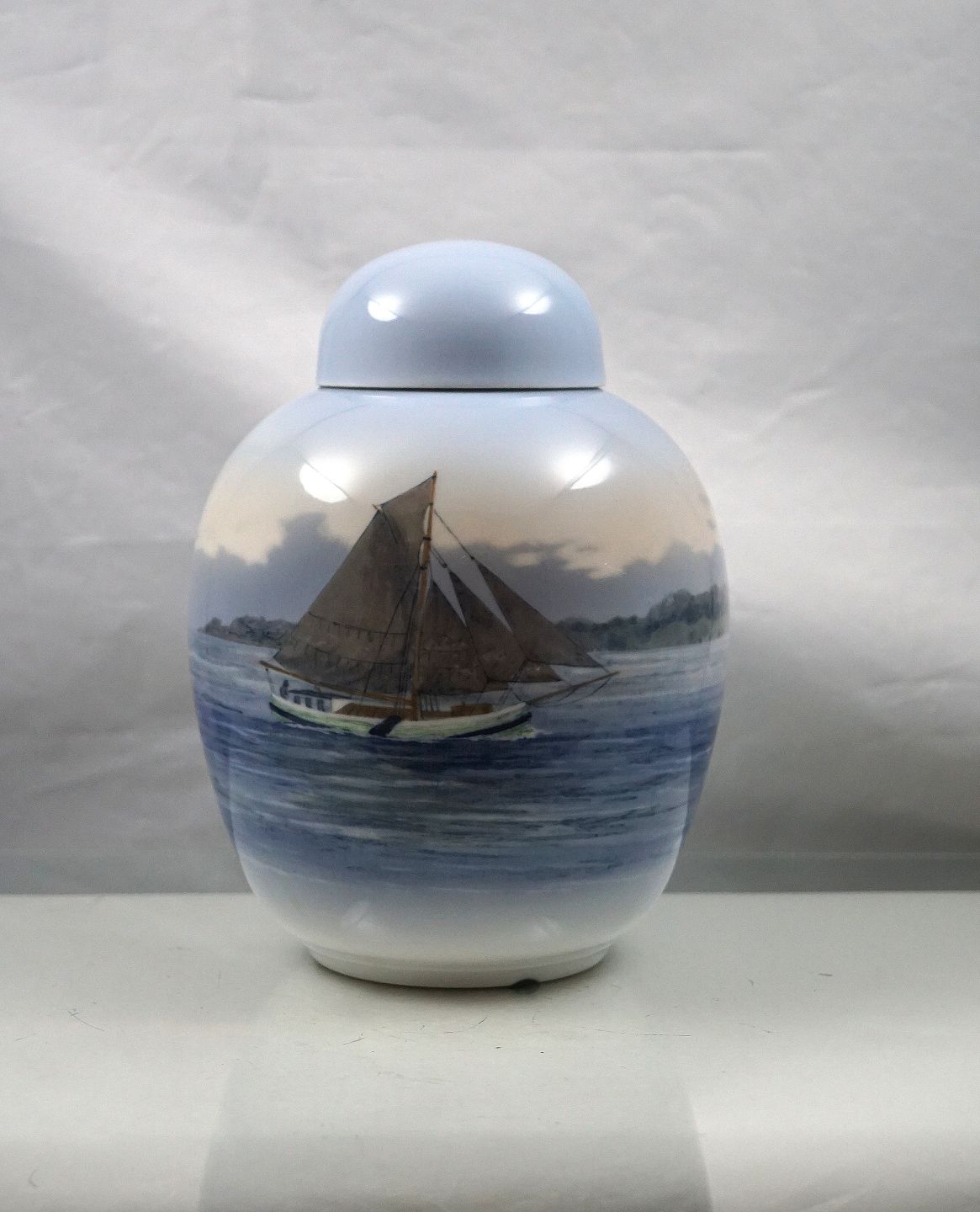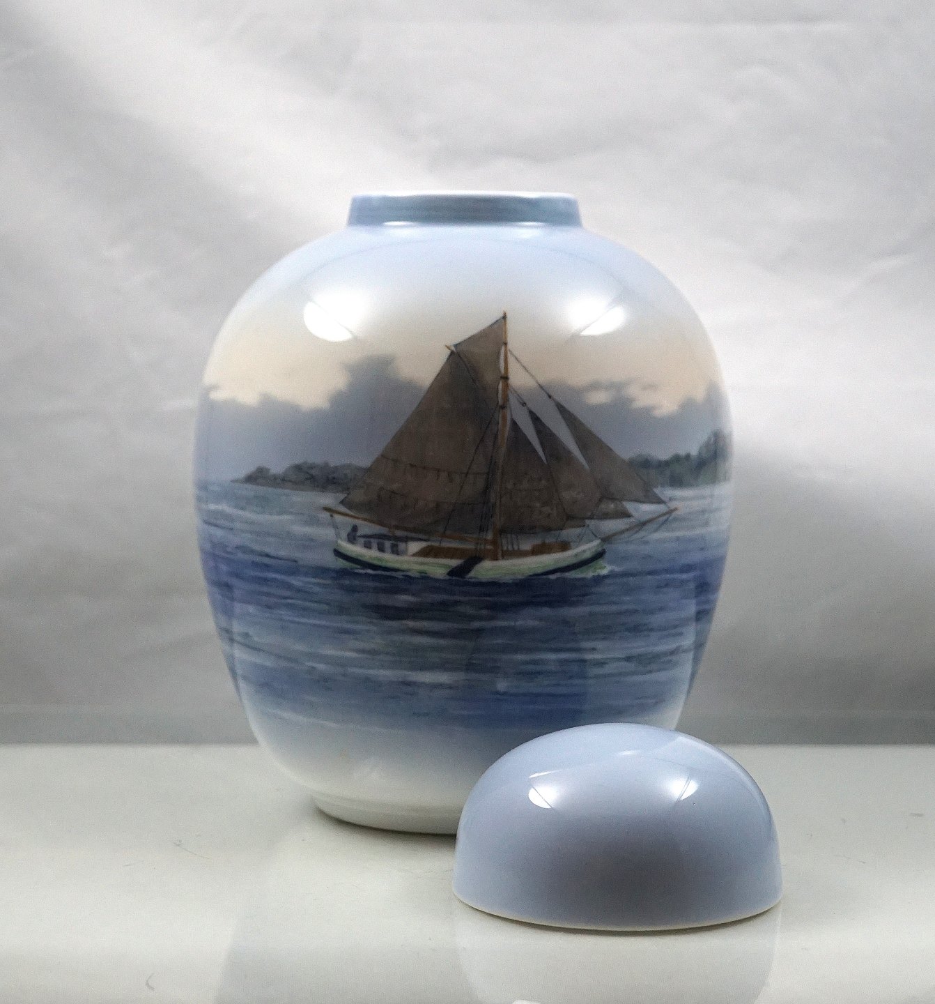Urne i porcelæn fra år 1953 med motiv af sejlbåd nr. 2824/1242.