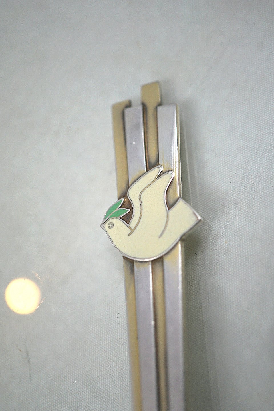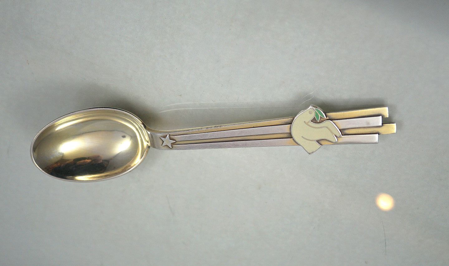 Anton Michelsen. Juleske 1943, skeen er i 3-tårnet sølv. Motivet er fredsdue.