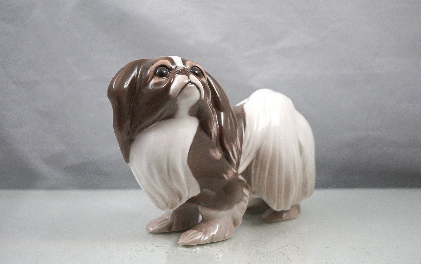 Bing & Grøndahl. Pekingeser, nr. 2114. Porcelænsfigur af stående pekingeser. Japanese Chin = Pekingeser. Figuren er 1. sortering