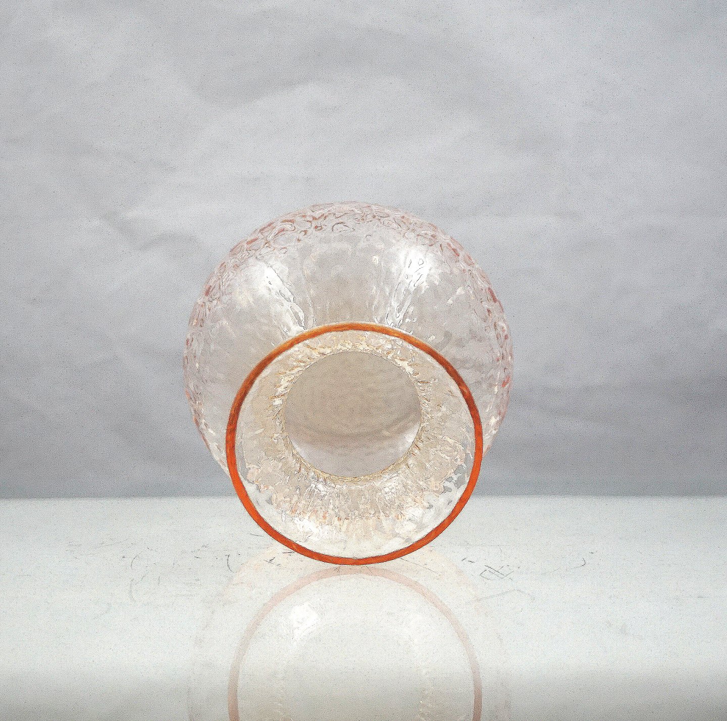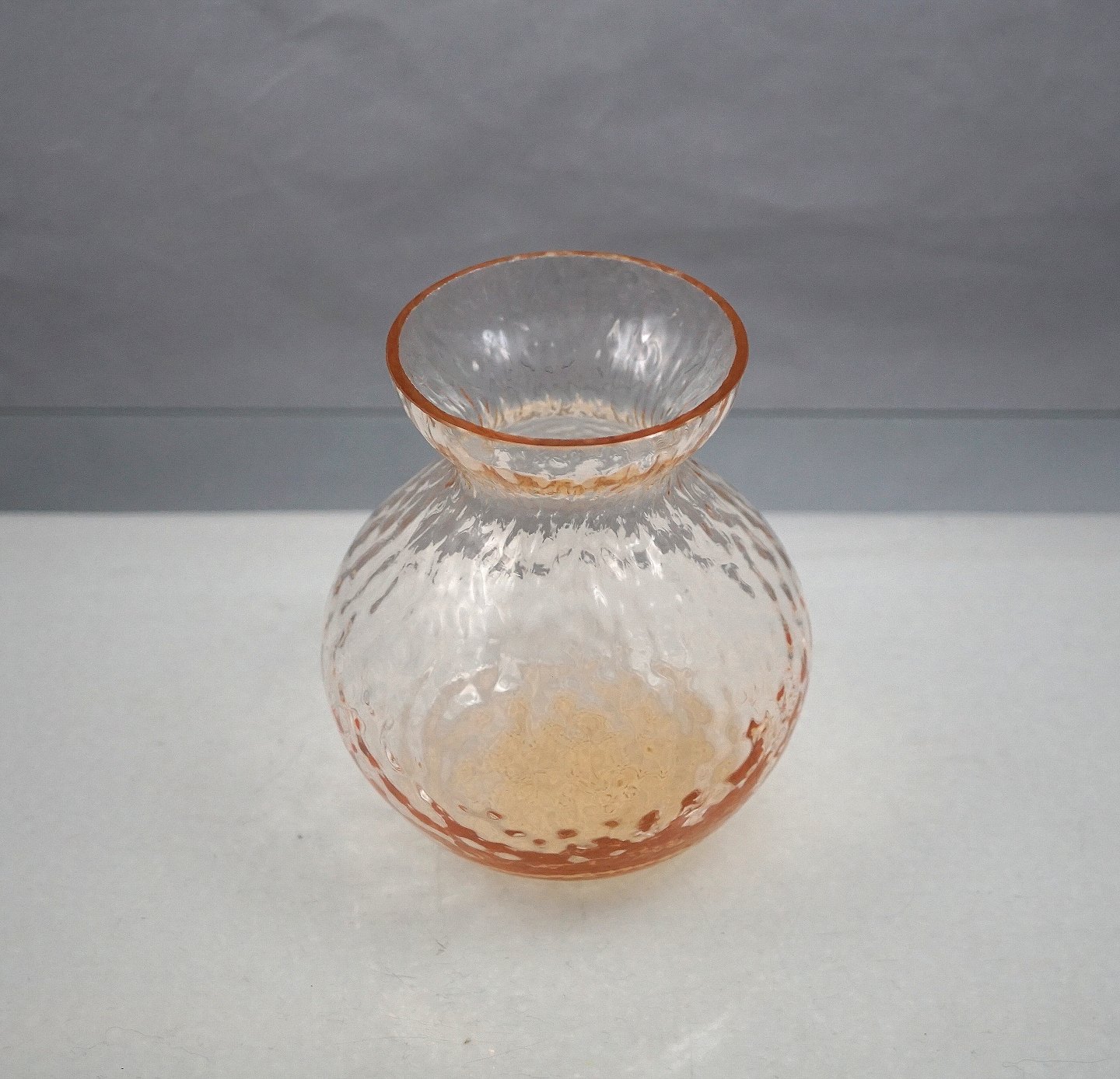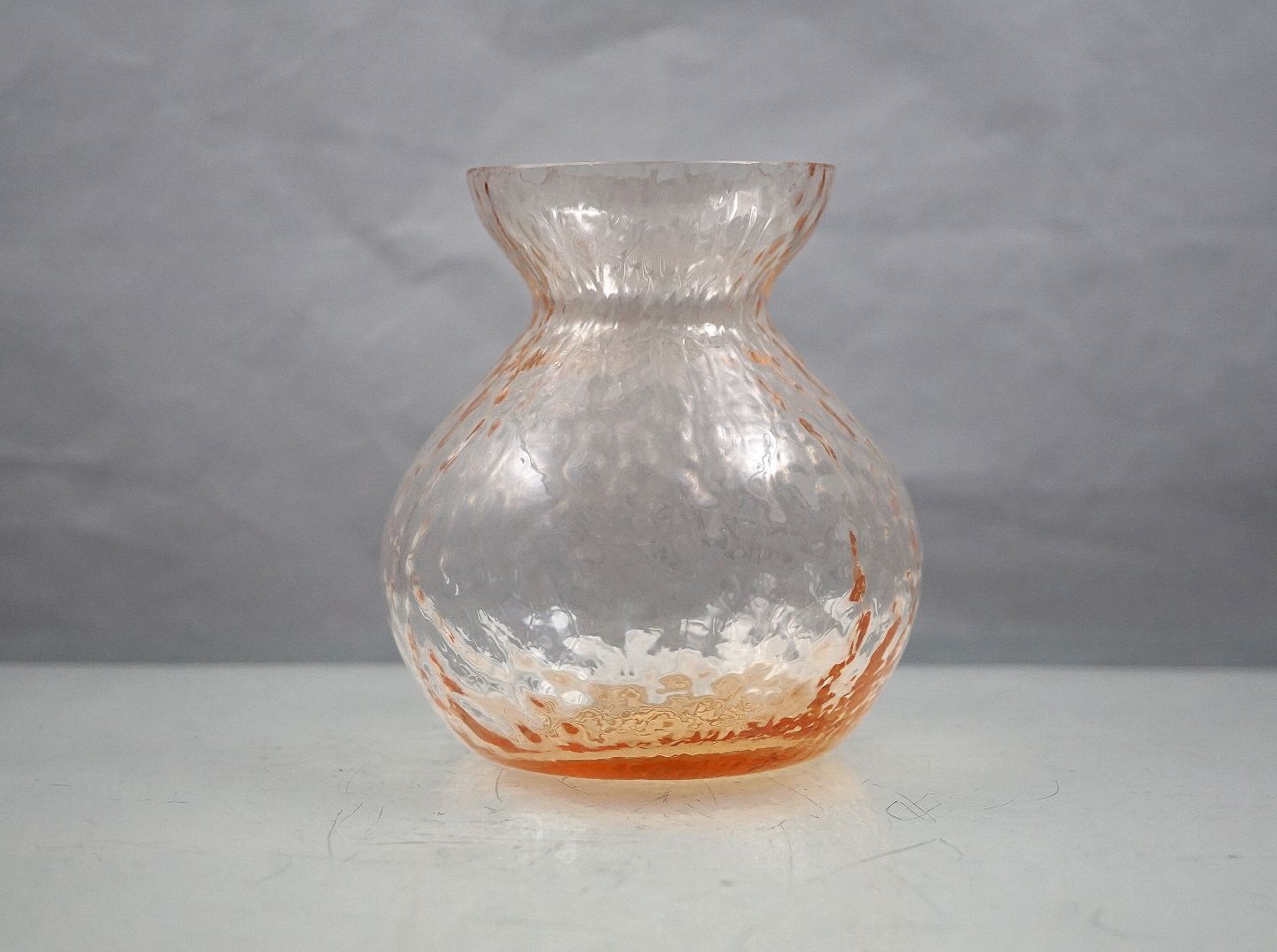 Lavt rosa hyacintglas, kugleformet. Blæst med krakeleret mønster.