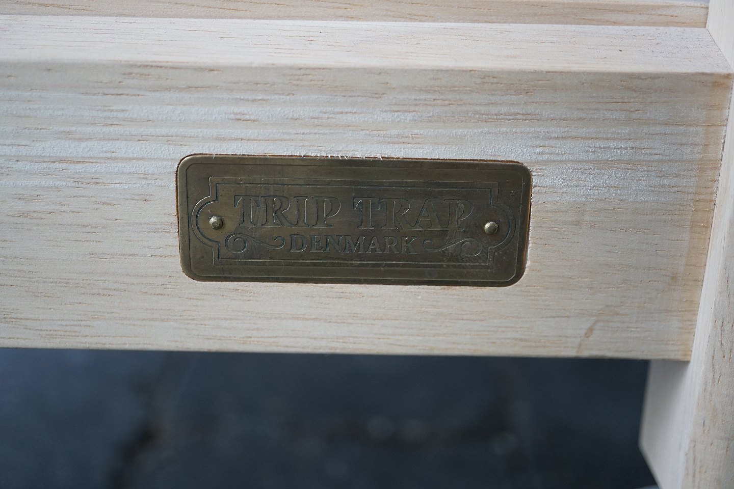 Trip trap, serveringsbord på hjul. Bordet er udført i massivt eg og med glasplade på øverste bakke
