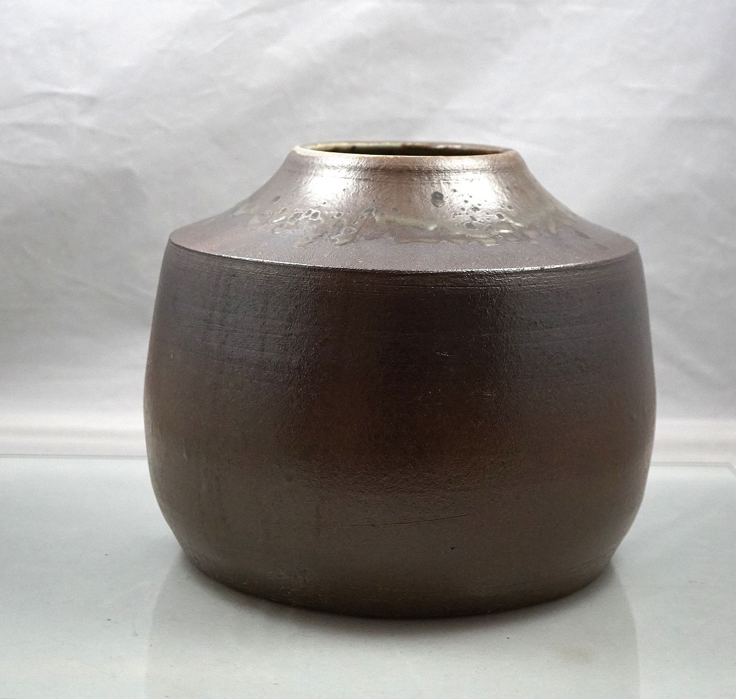 Chris Moes. Keramik vase med brun glasur. Signeret C Moes 1977