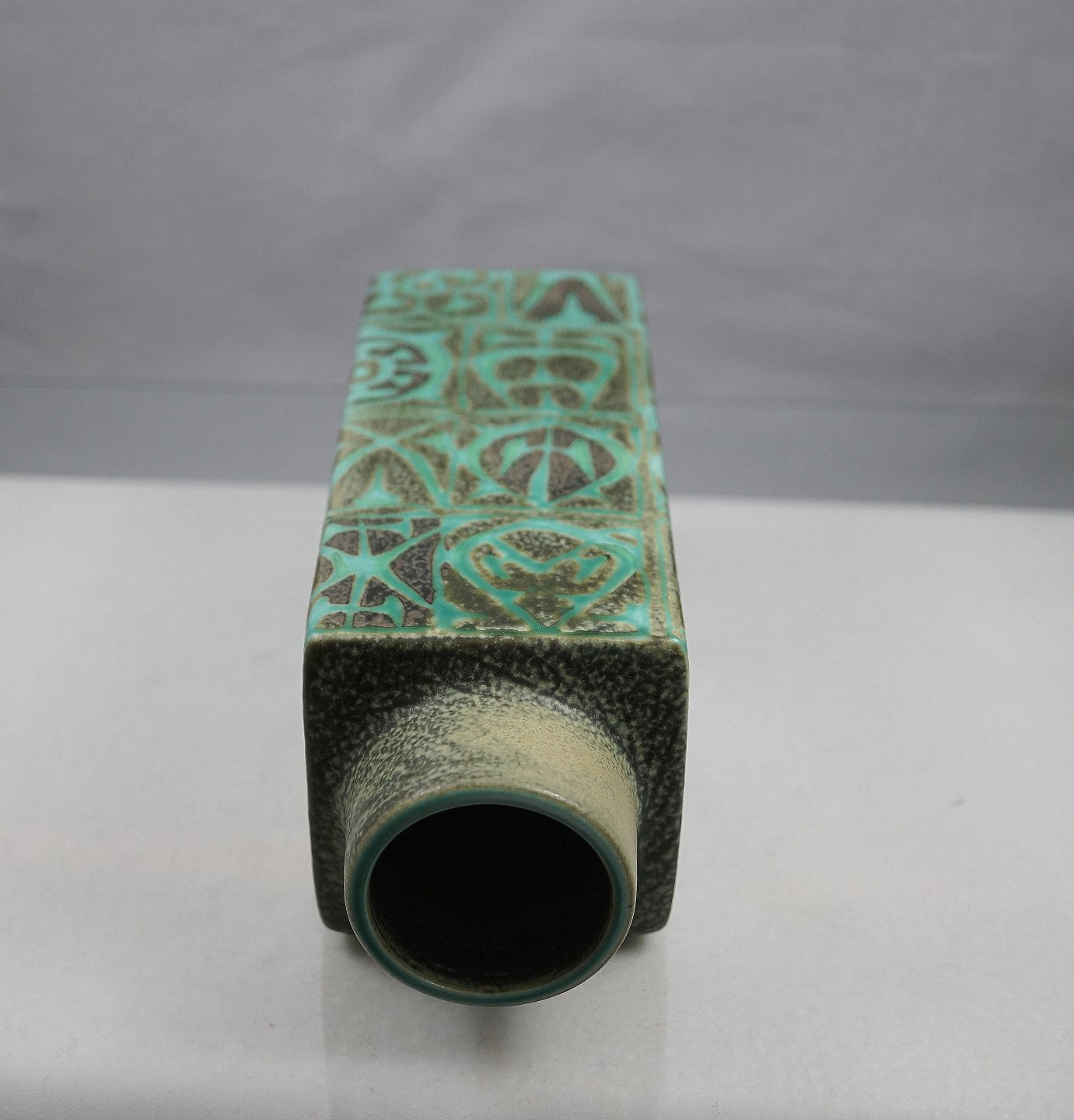 Kgl. Baca vase nr. 712/3259. 4-kantet fajance vase med grønt/sort mønster