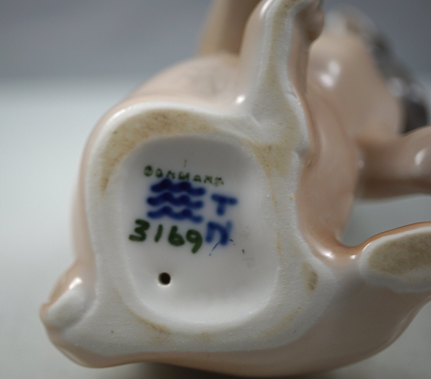 Royal Copenhagen. Siddende Boxerhvalp nr. 3169. Figuren er 1. sortering og uden brugsspor.