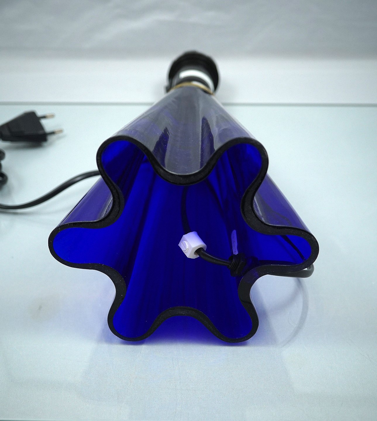 LeKlint. Bordlampe nr. 304. Lampefoden er af transparent blåt, foldet glas.