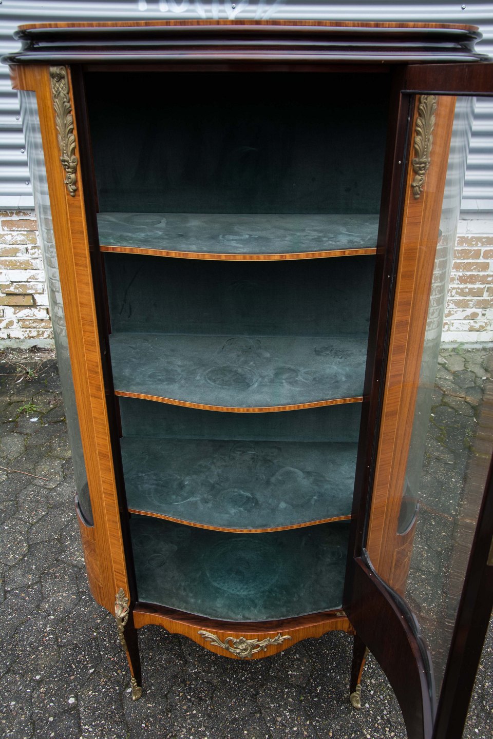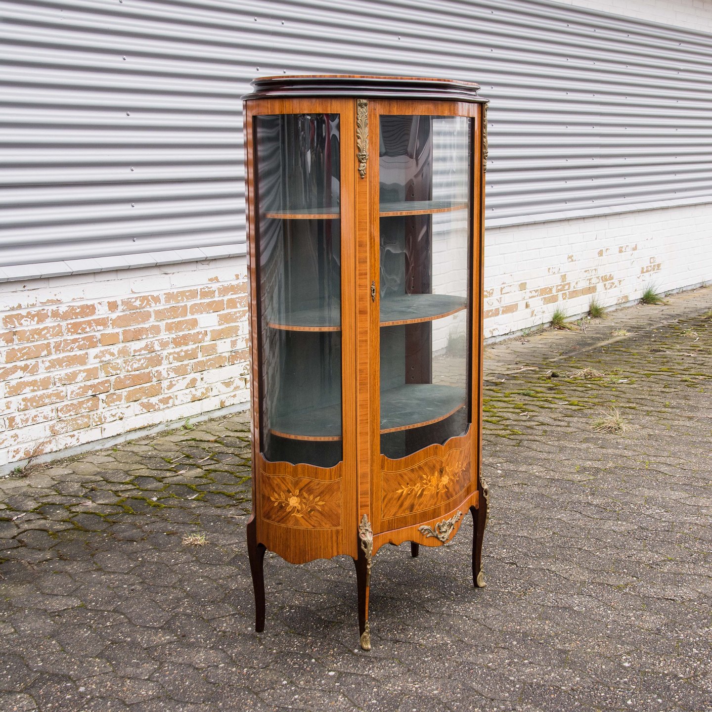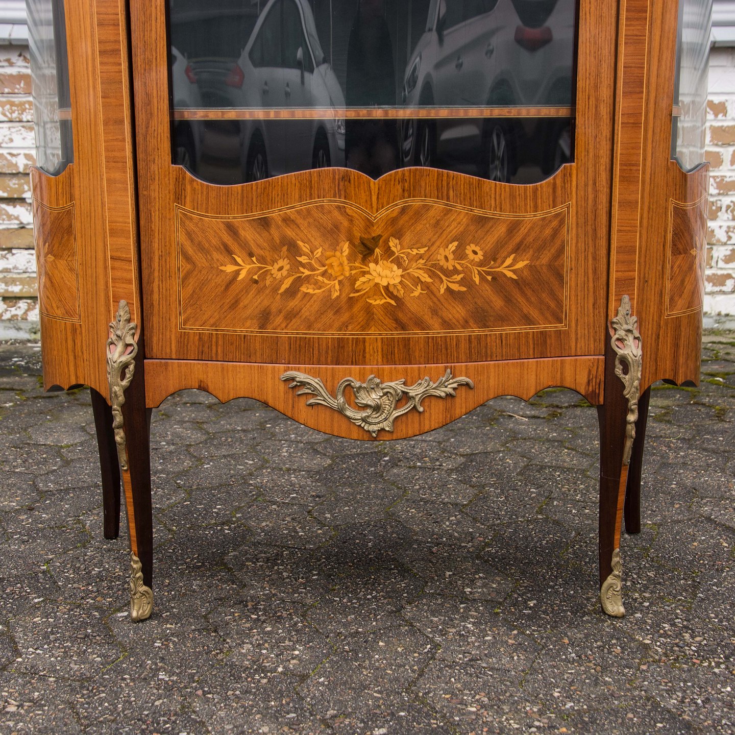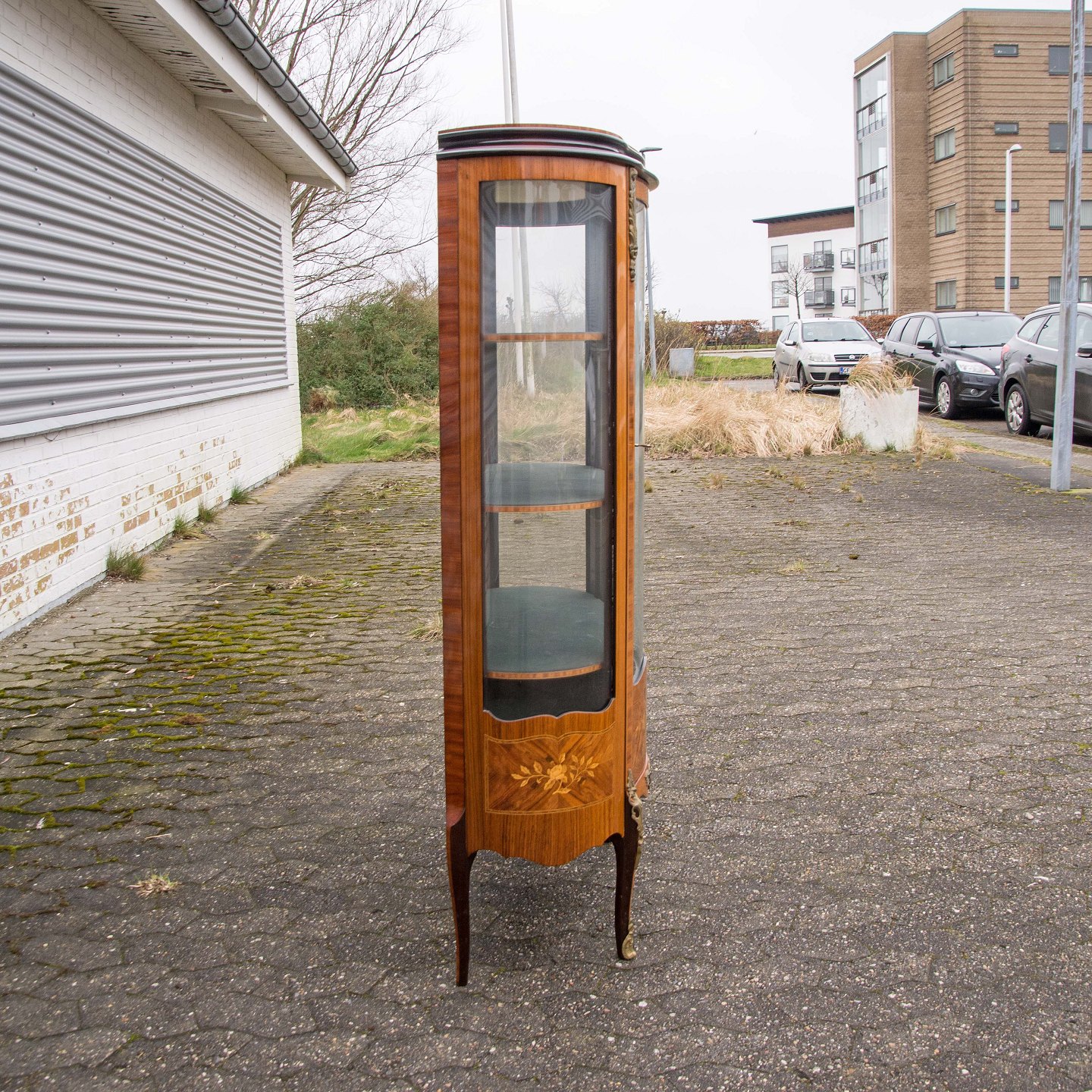 Glasskab i lakeret træ med intarsia og messing ornamenter