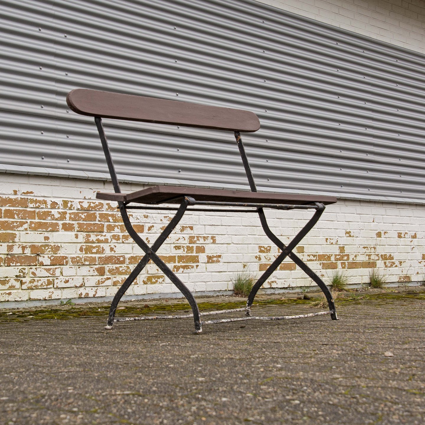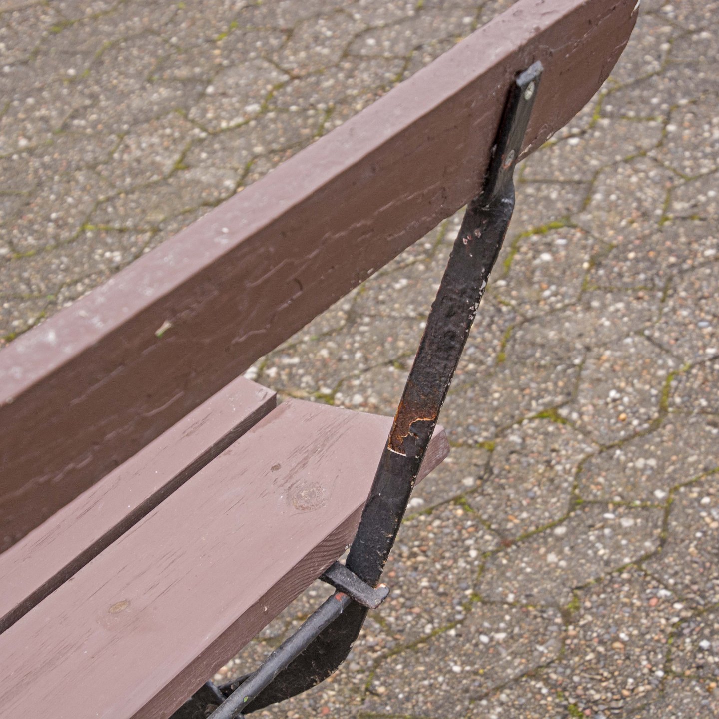 To personers bænk i sortlakeret metal med sæde og ryg i træ