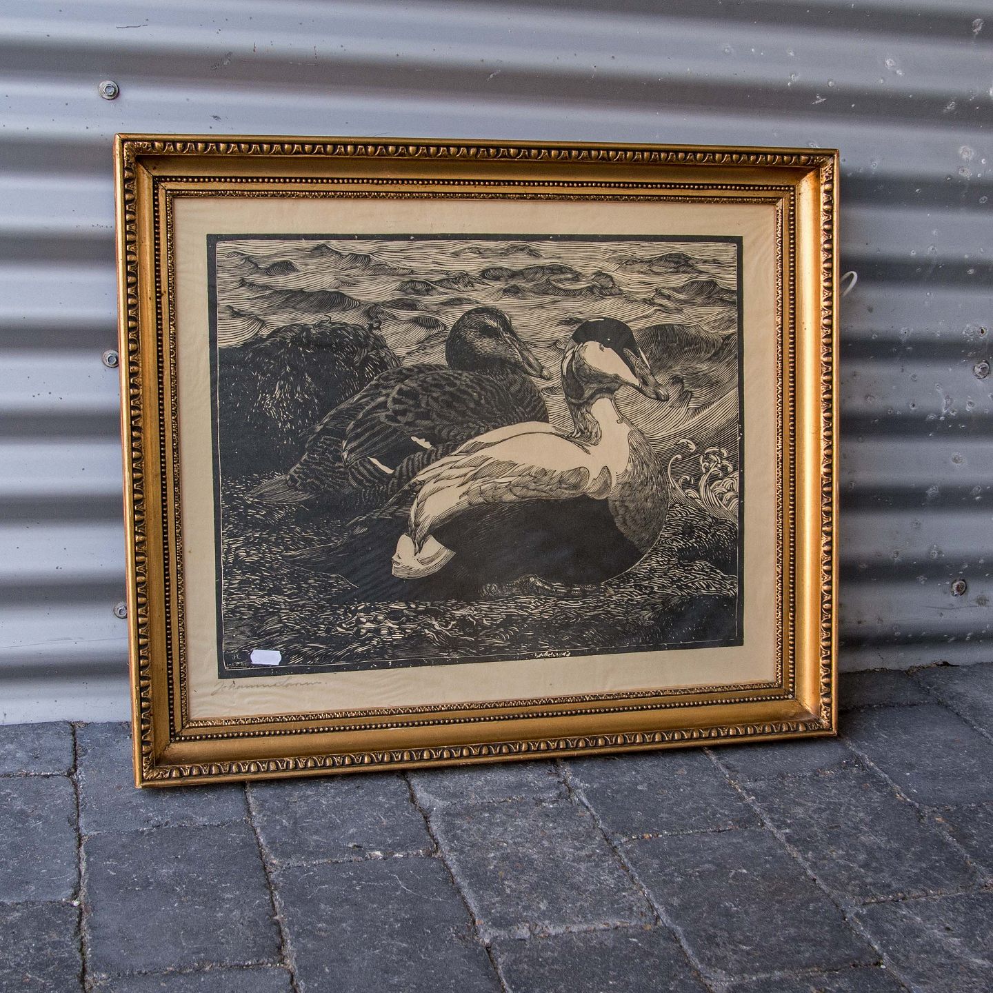 Tryk af Edderfugle and og andrik, bogtryk i glas og ramme.