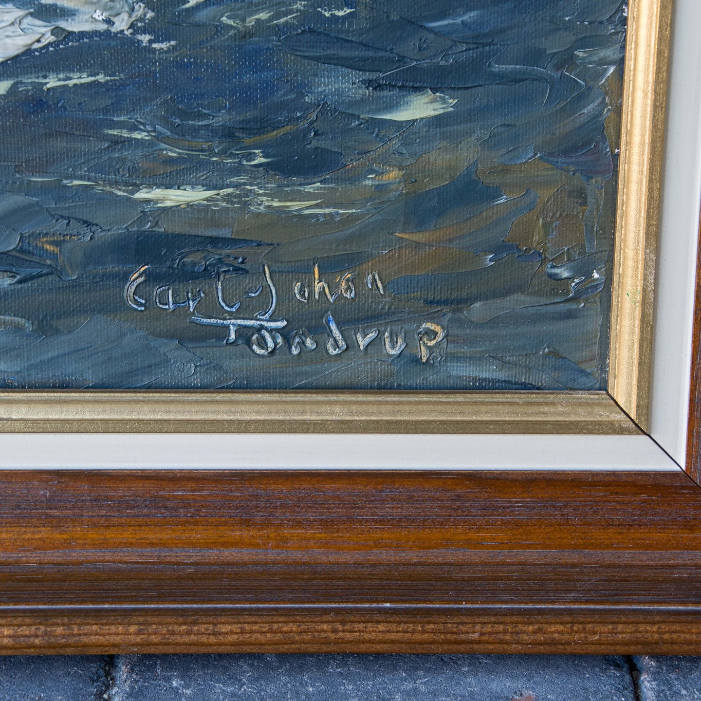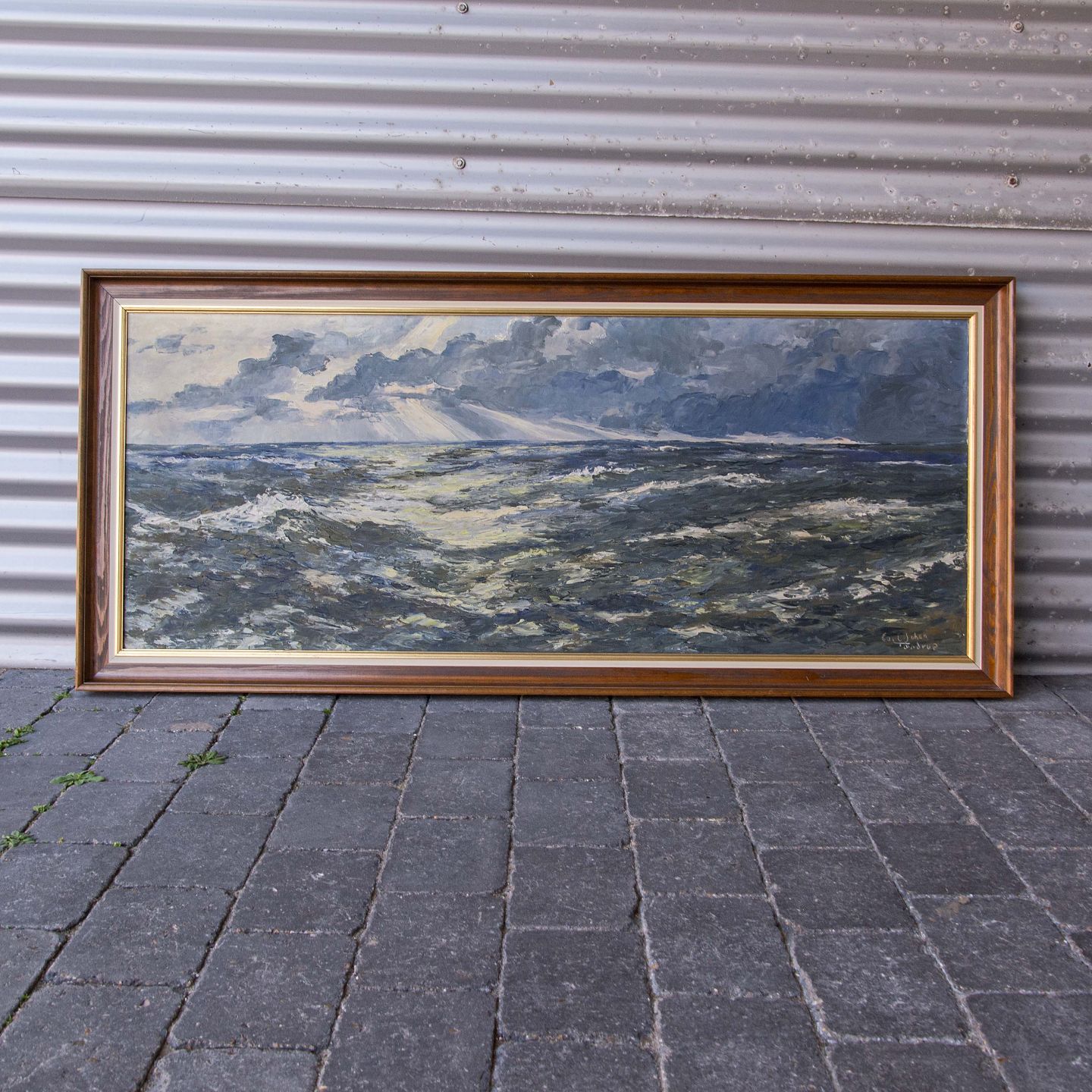 Maleri af hav i oprør, Olie på lærred i guldramme.