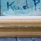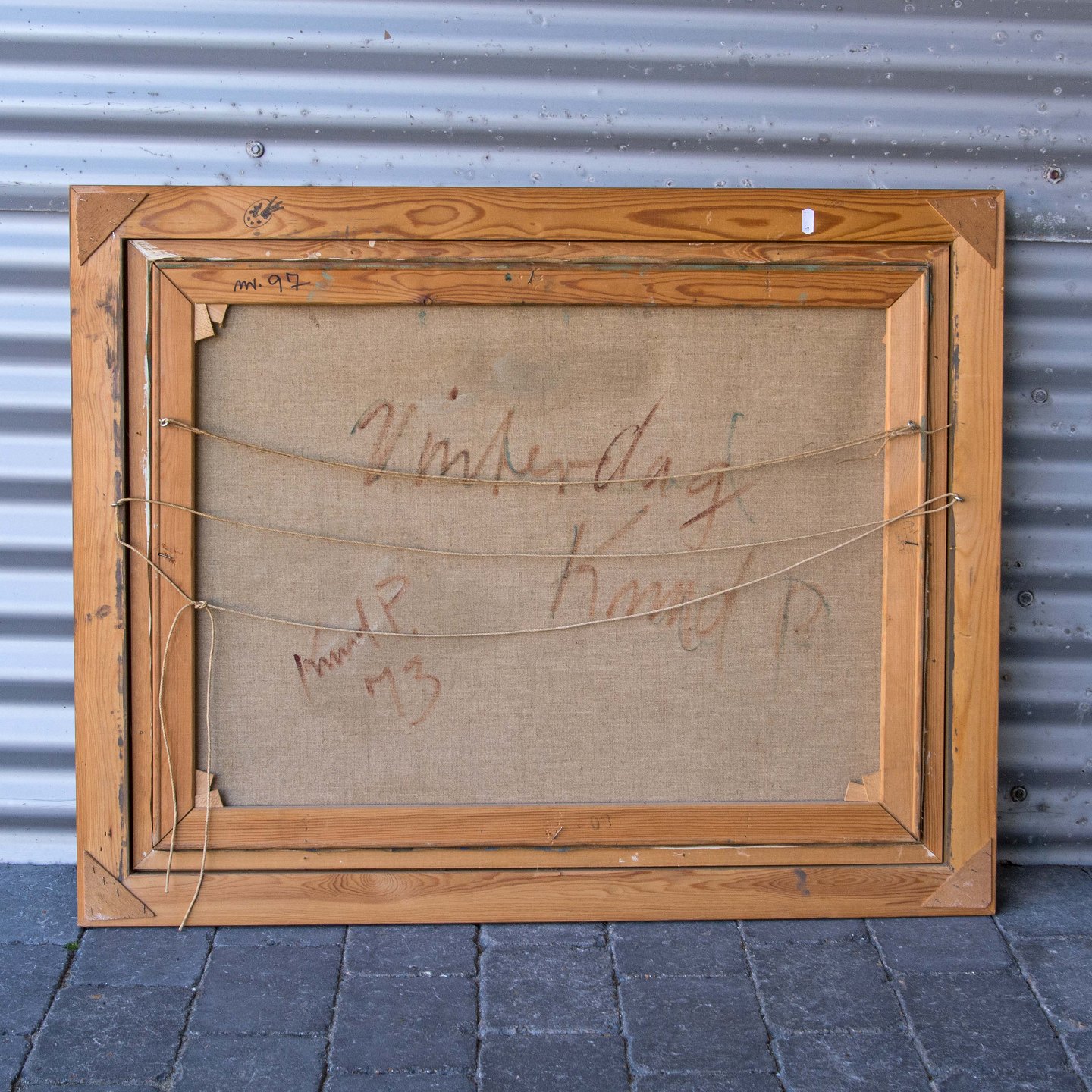 Maleri af vintervejr i blålig nuance 1973, olie på lærred med guldramme.