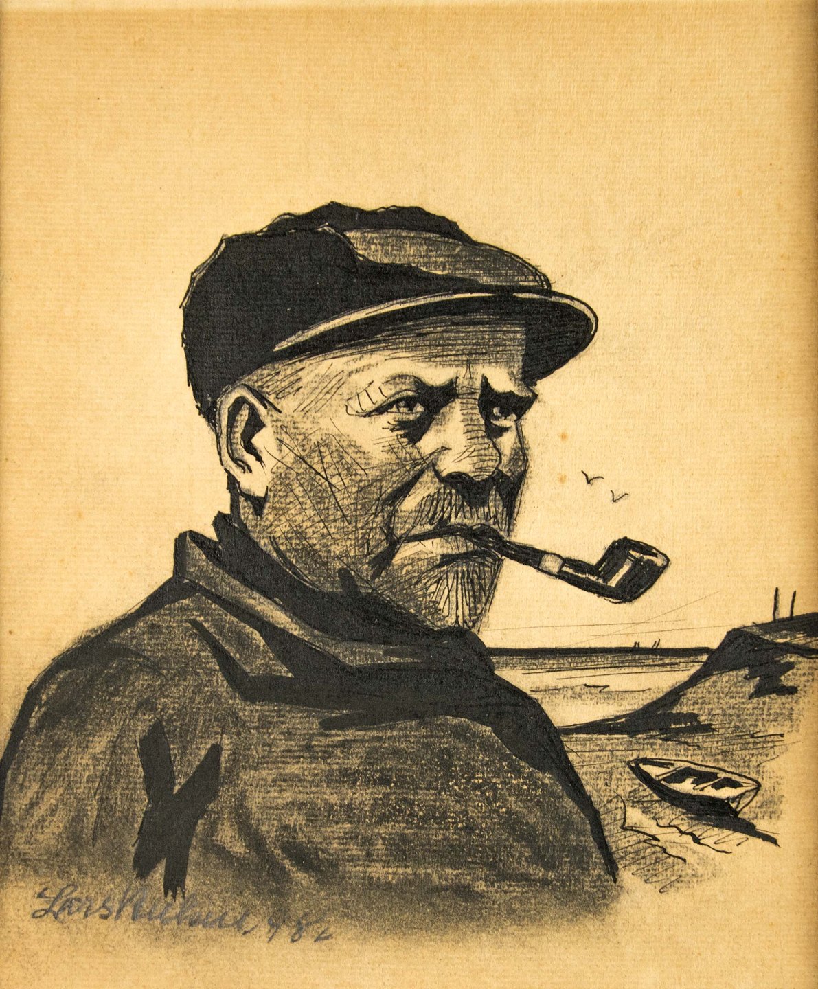 Tegnet portræt af Niels Peter Nielsen kendt som Peter Sømand