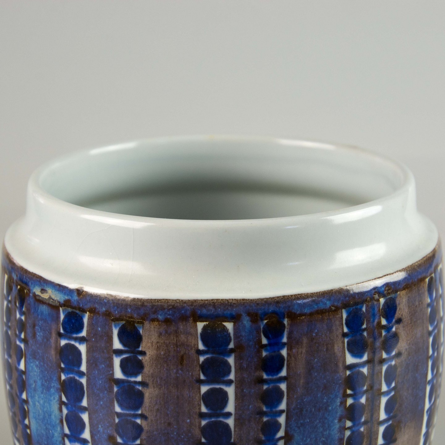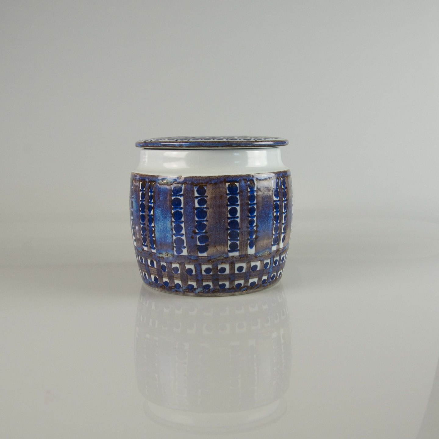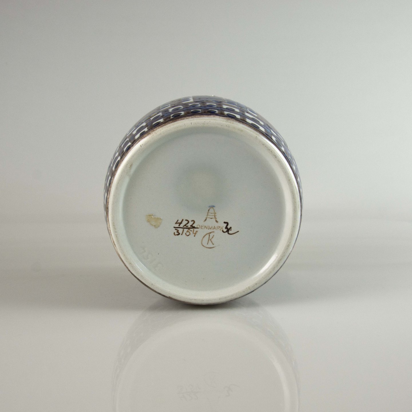 Tenera lågkrukke i fajance med mønster i blå nuancer nr. 422/3154