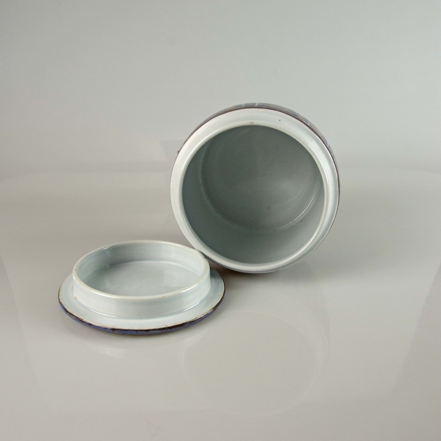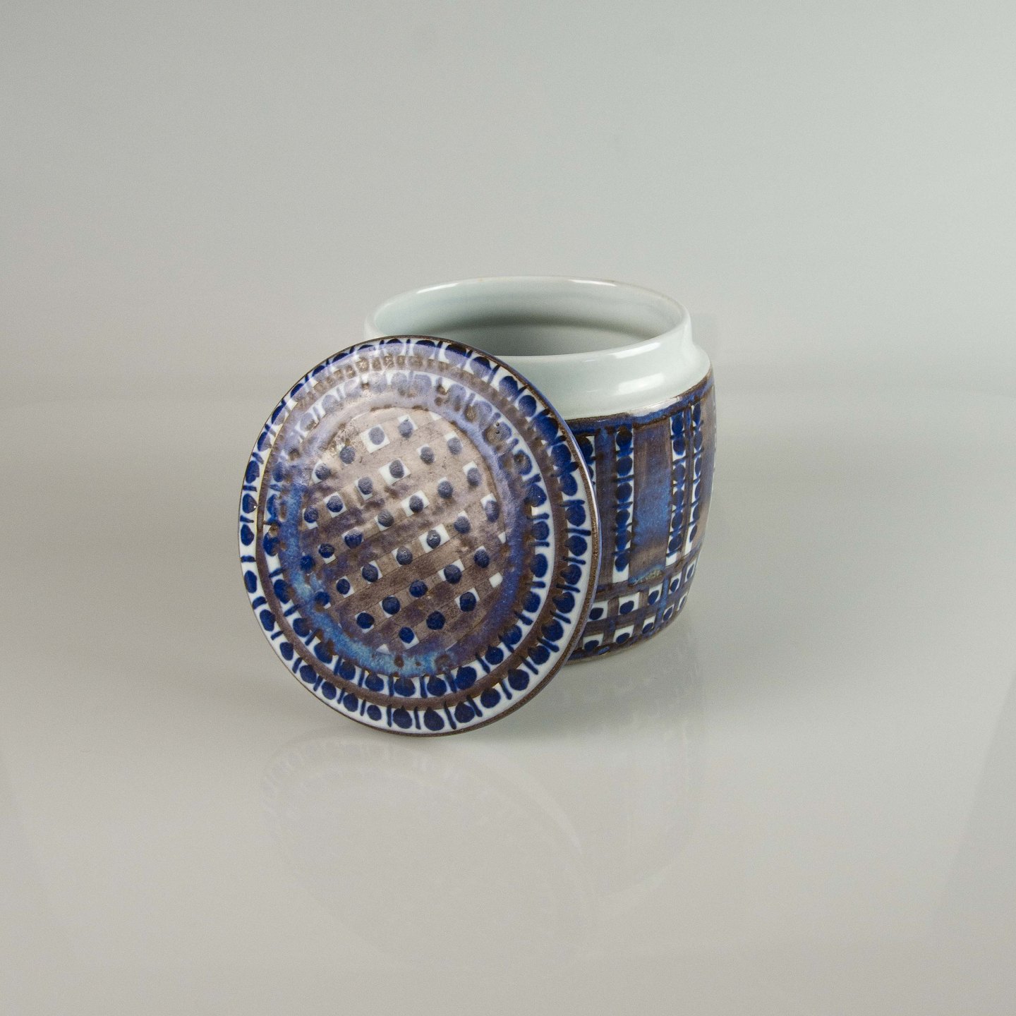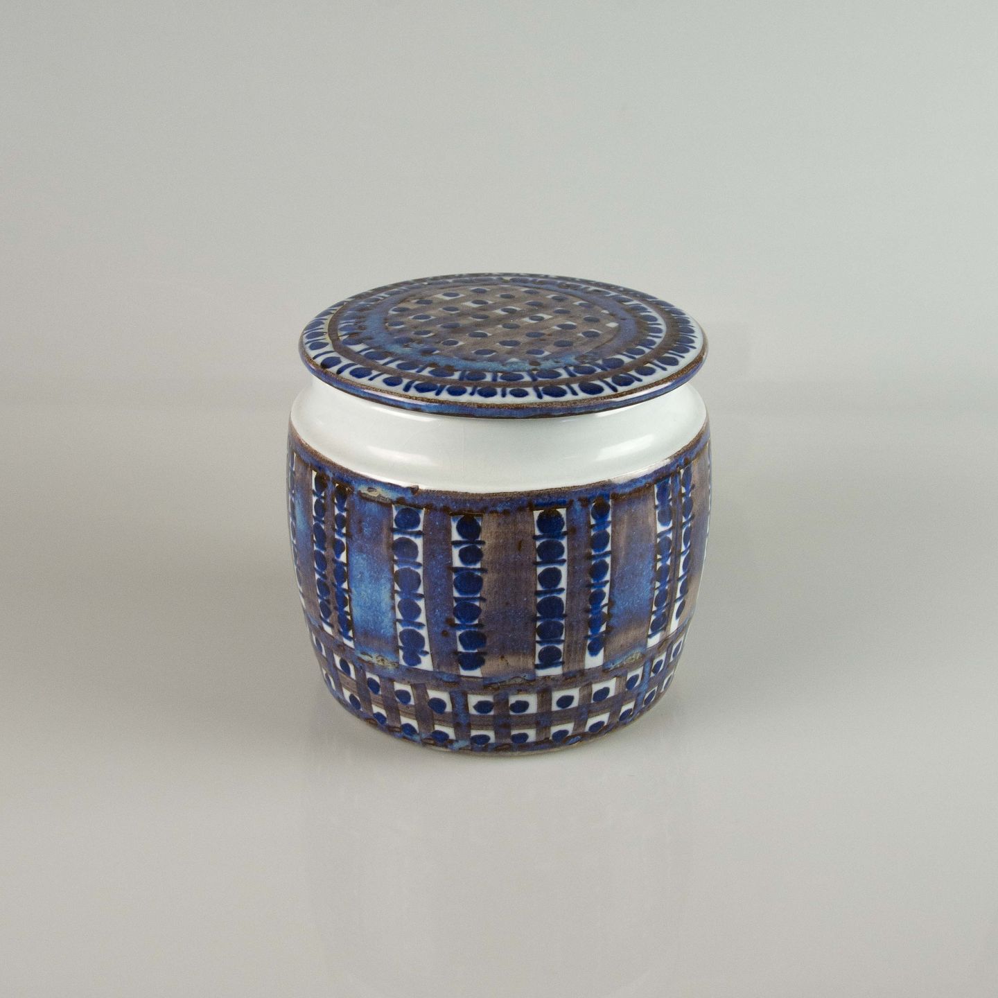 Tenera lågkrukke i fajance med mønster i blå nuancer nr. 422/3154
