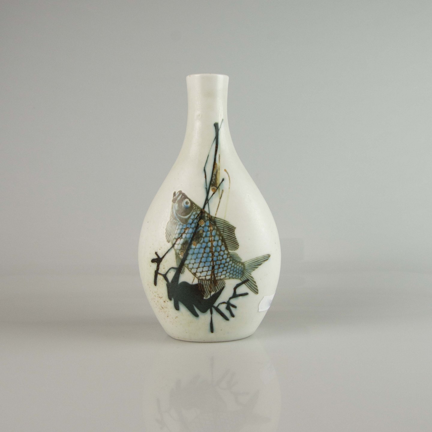 Oval Diana vase i fajance med motiv af fisk nr. 1046/5144