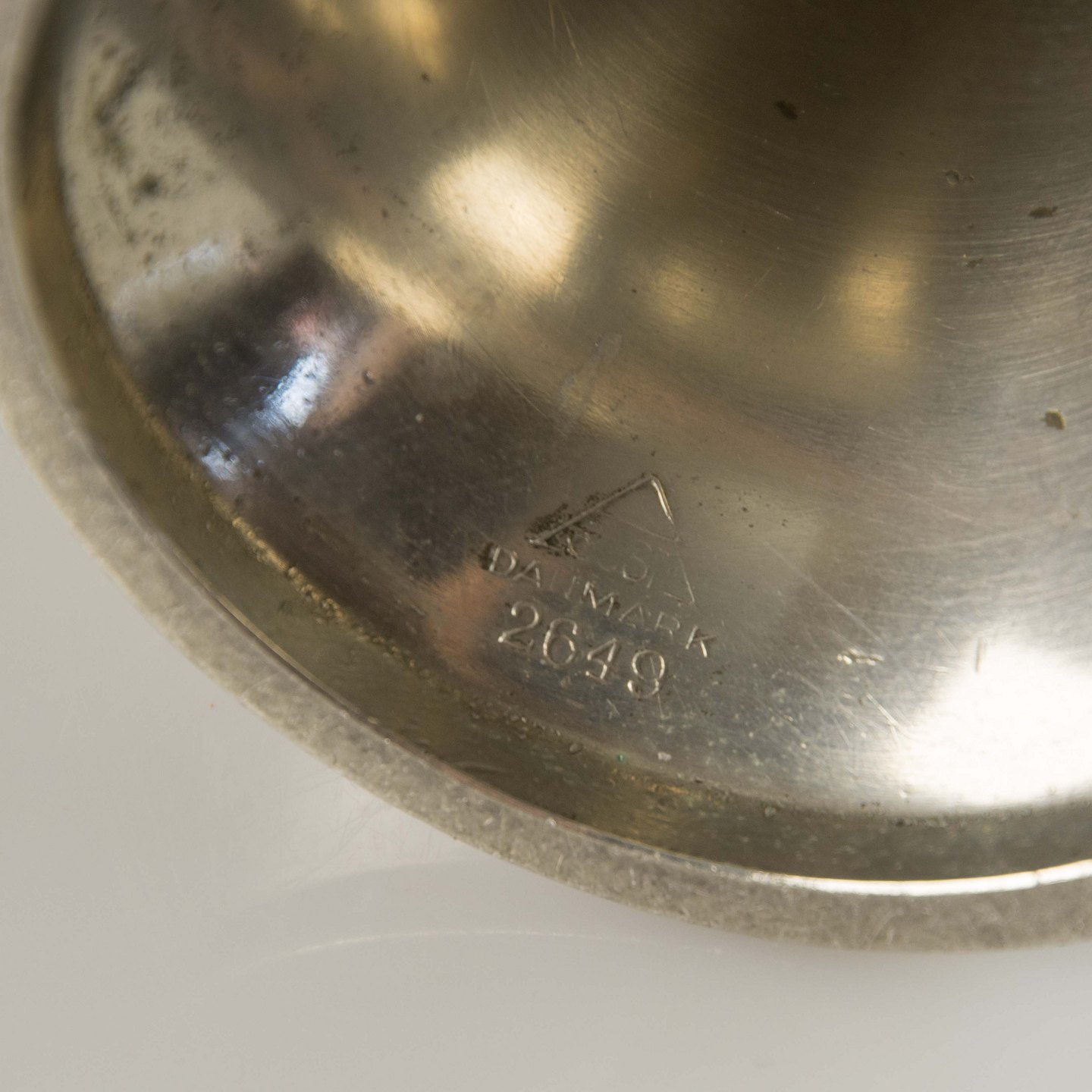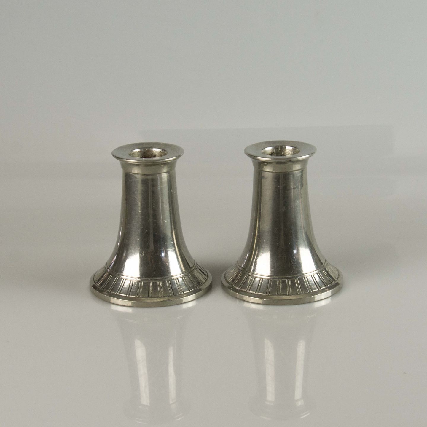 Lysestager i tin med kantet mønster ved fod nr. 2649