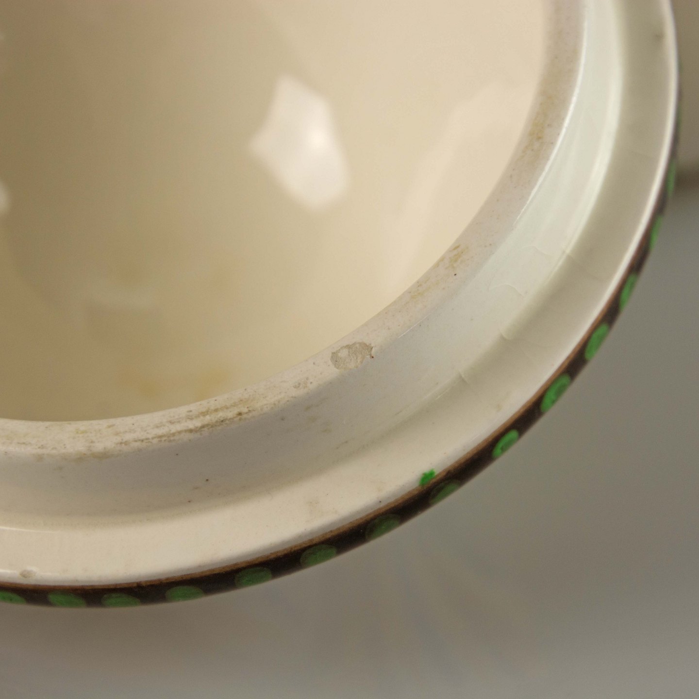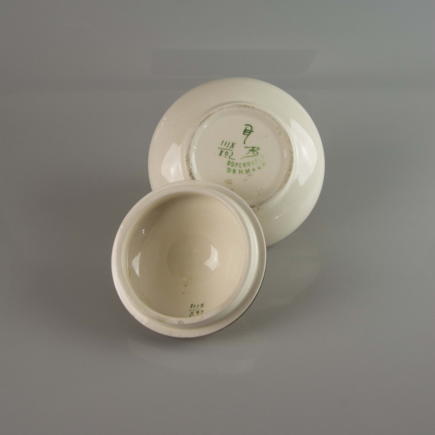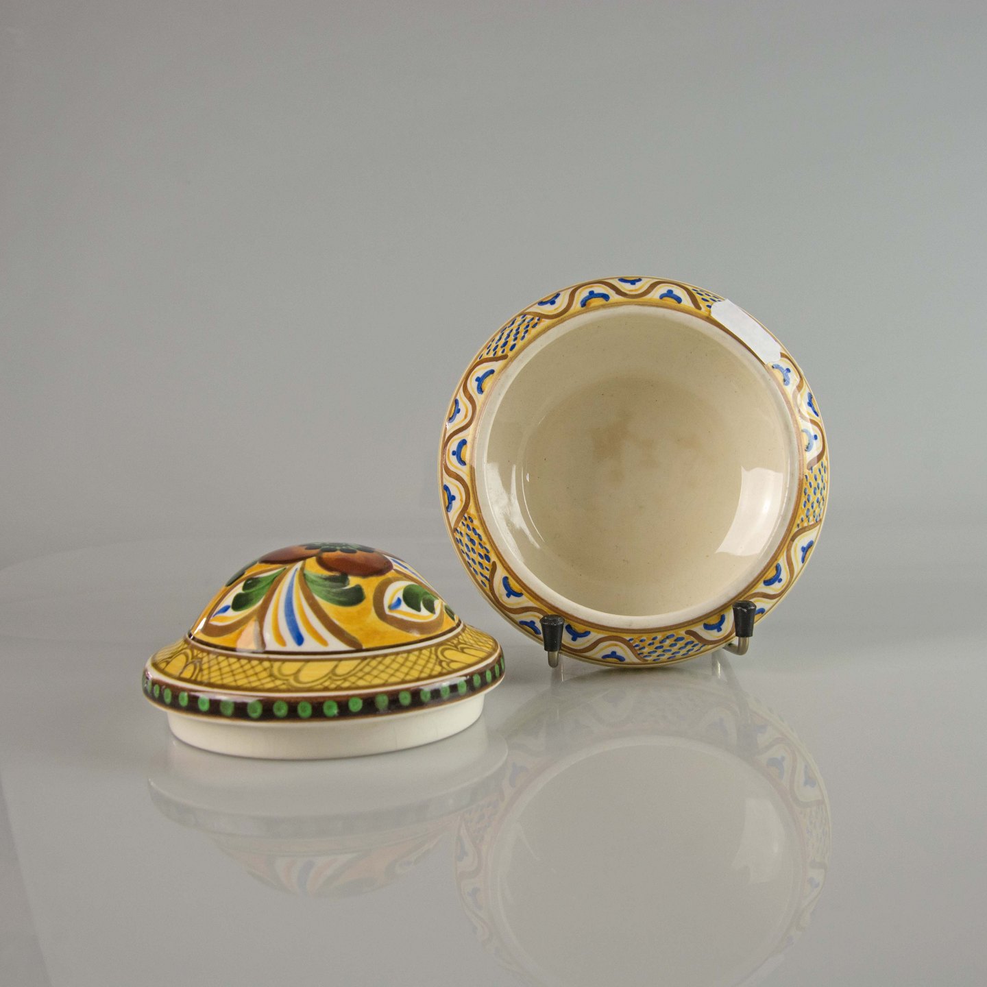 Krukke med låg i fajance med flerfarvet mønster og rødlig anemone nr. 1118/892