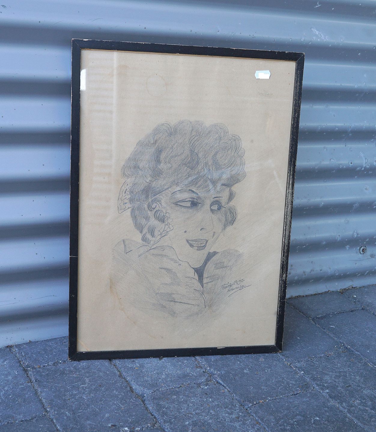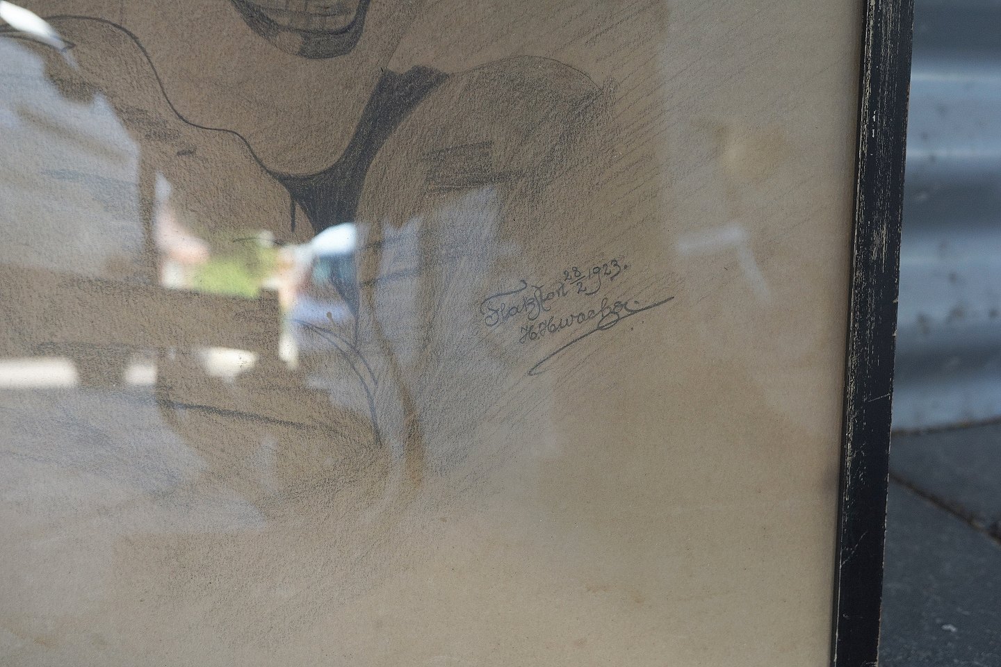 Tegning af dame med pelskrave, tegningen er udført på Flakfortet. Tegning 28/2, signeret H H Wacher 1923