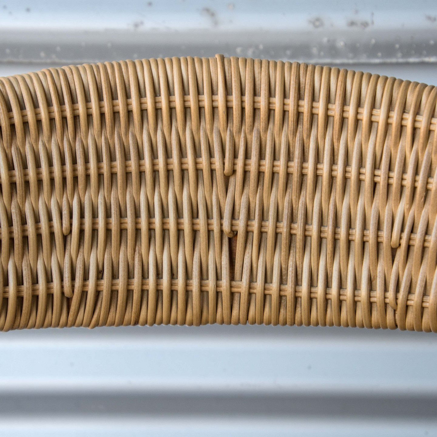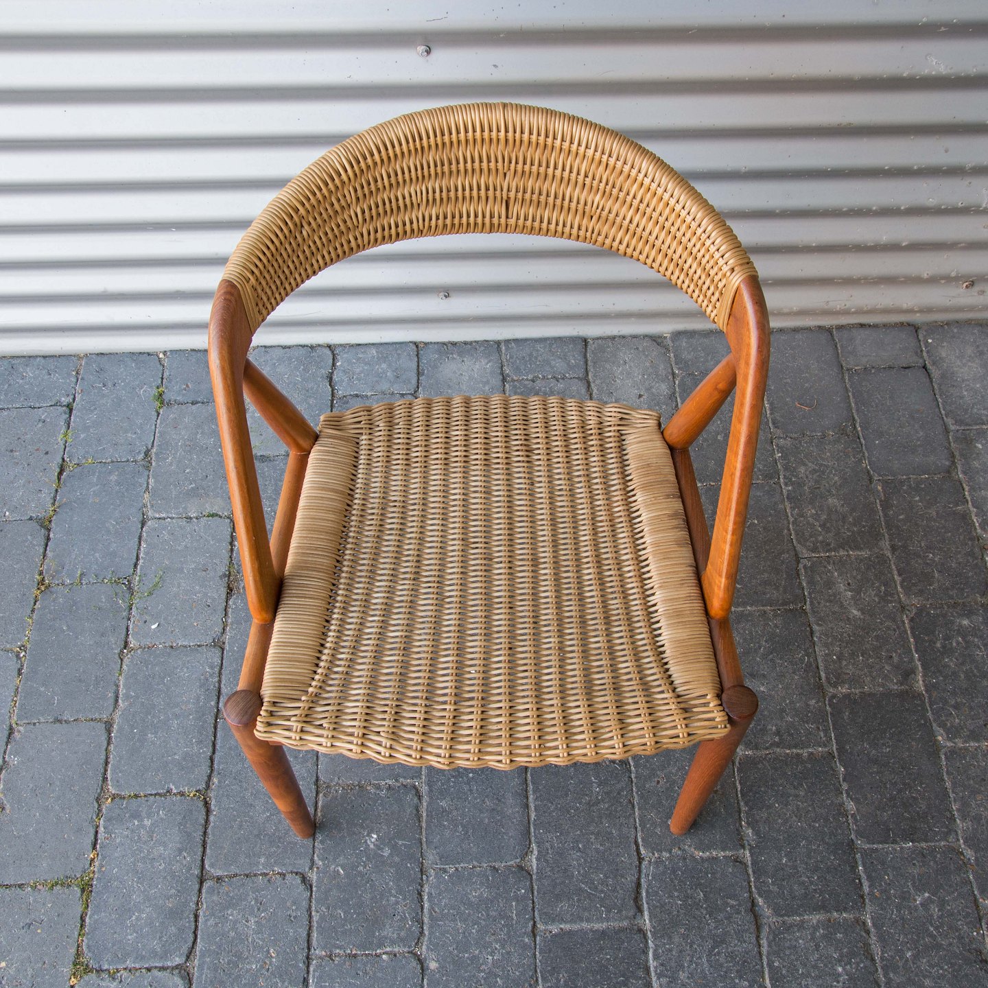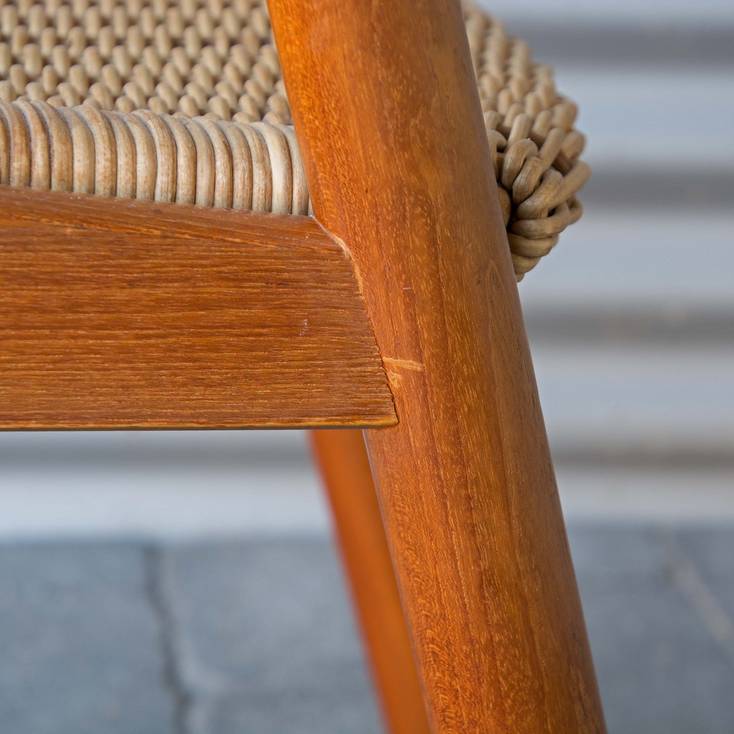 Sæt med seks stole i teaktræ med peddigrør flettet sæder og ryg