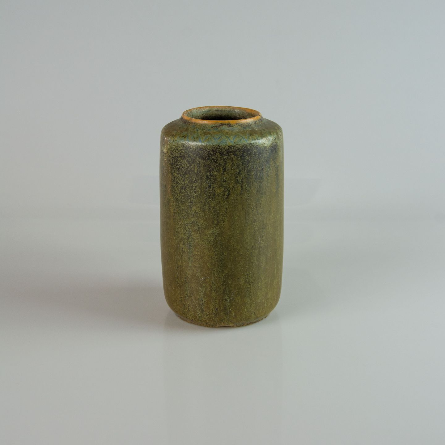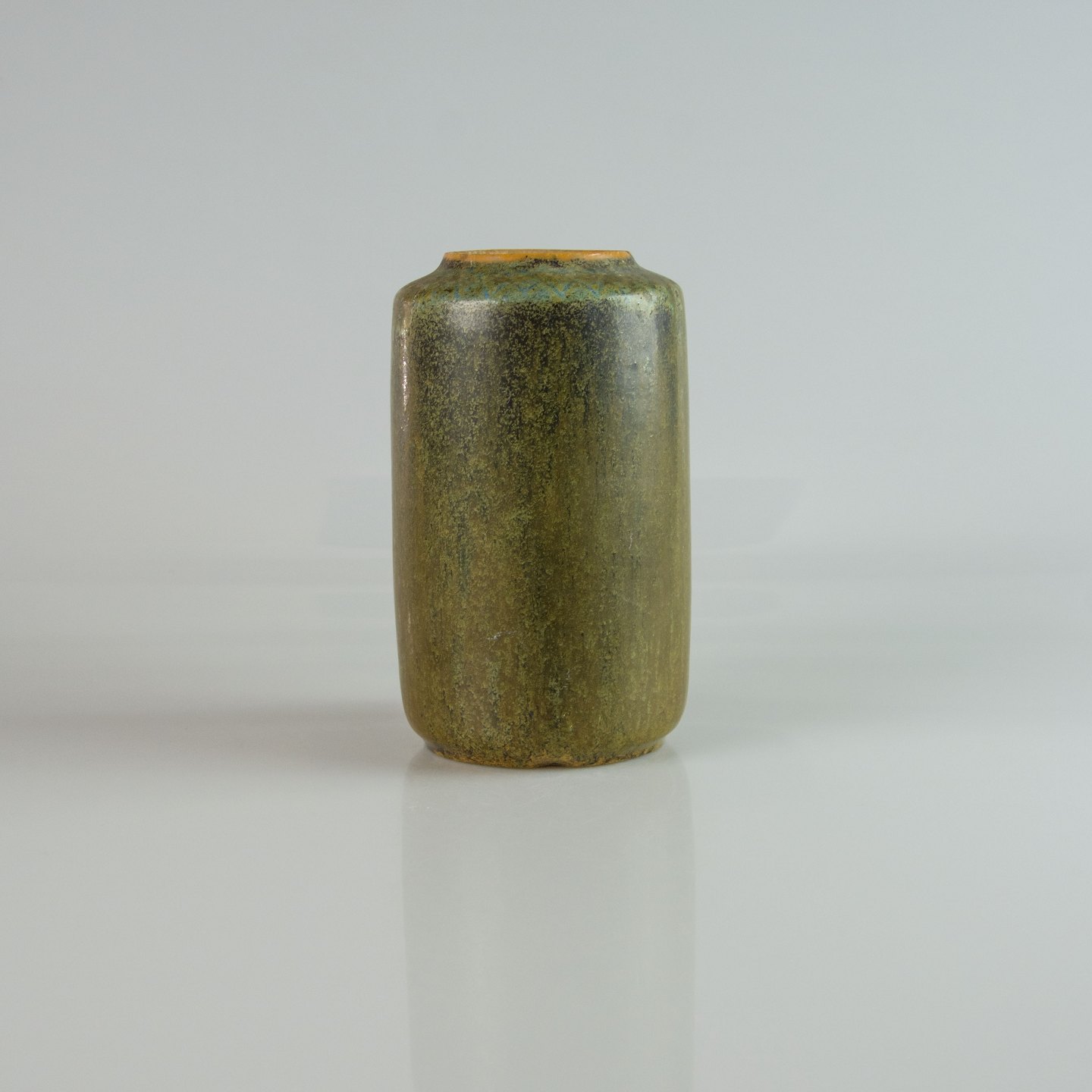 Cylinderformet vase i grønbrun stentøj