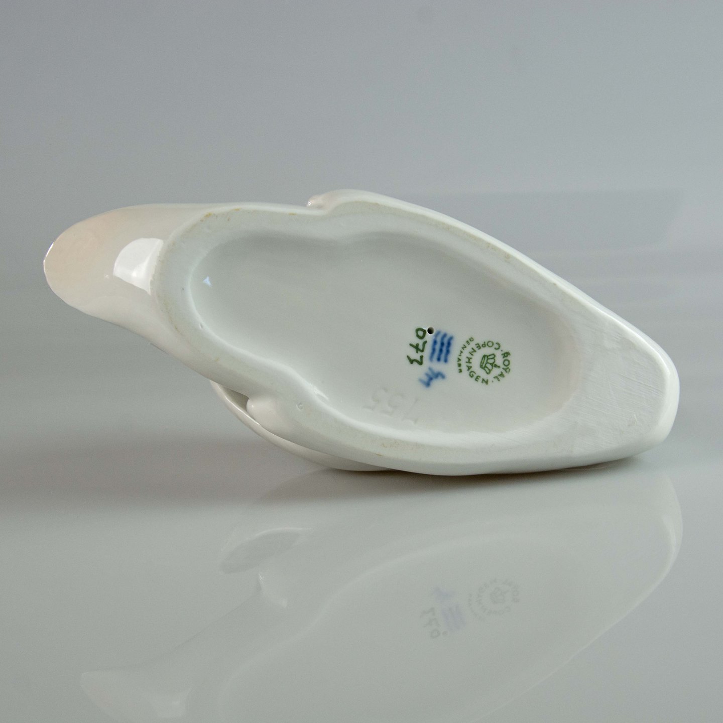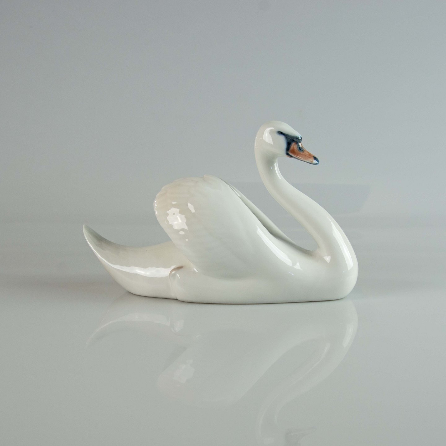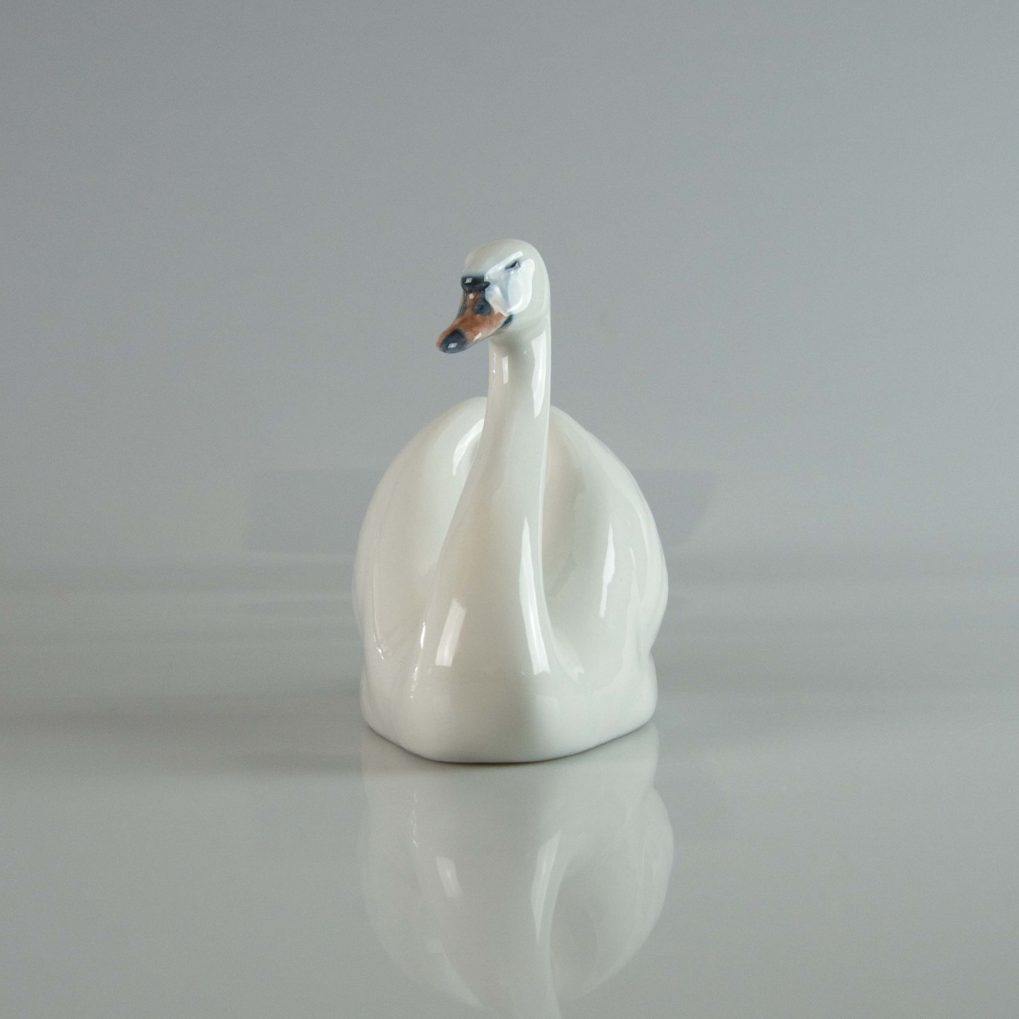 Figur i porcelæn med motiv af svømmende hvid svane nr. 073