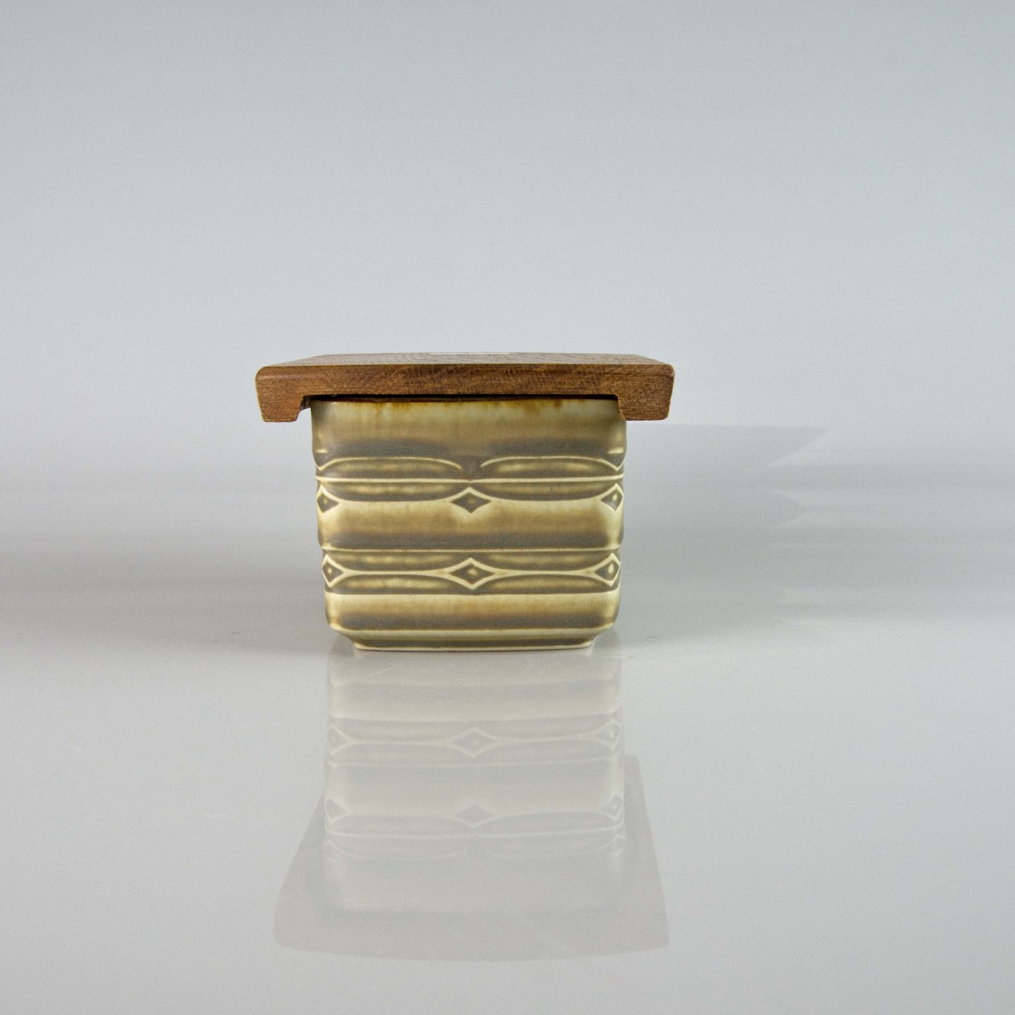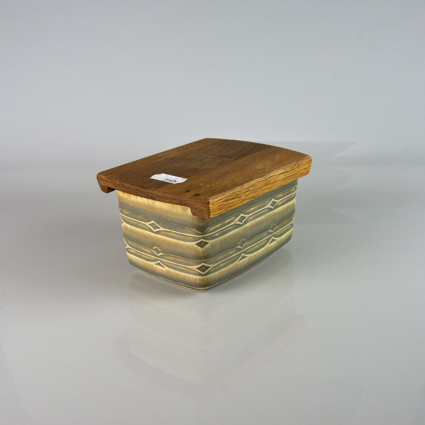 Smørboks i stentøj med trælåg fra stellet Rune nr. 582