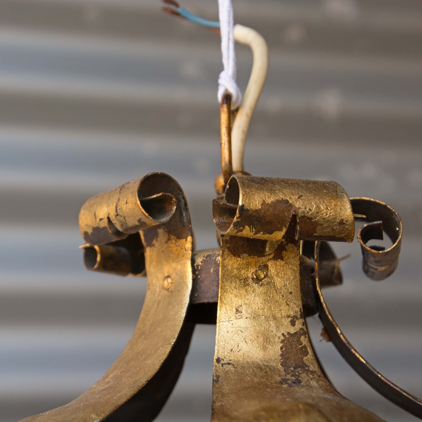 Gammel bager loftslampe fra bageri udformet som en gylden krone i dansk design.