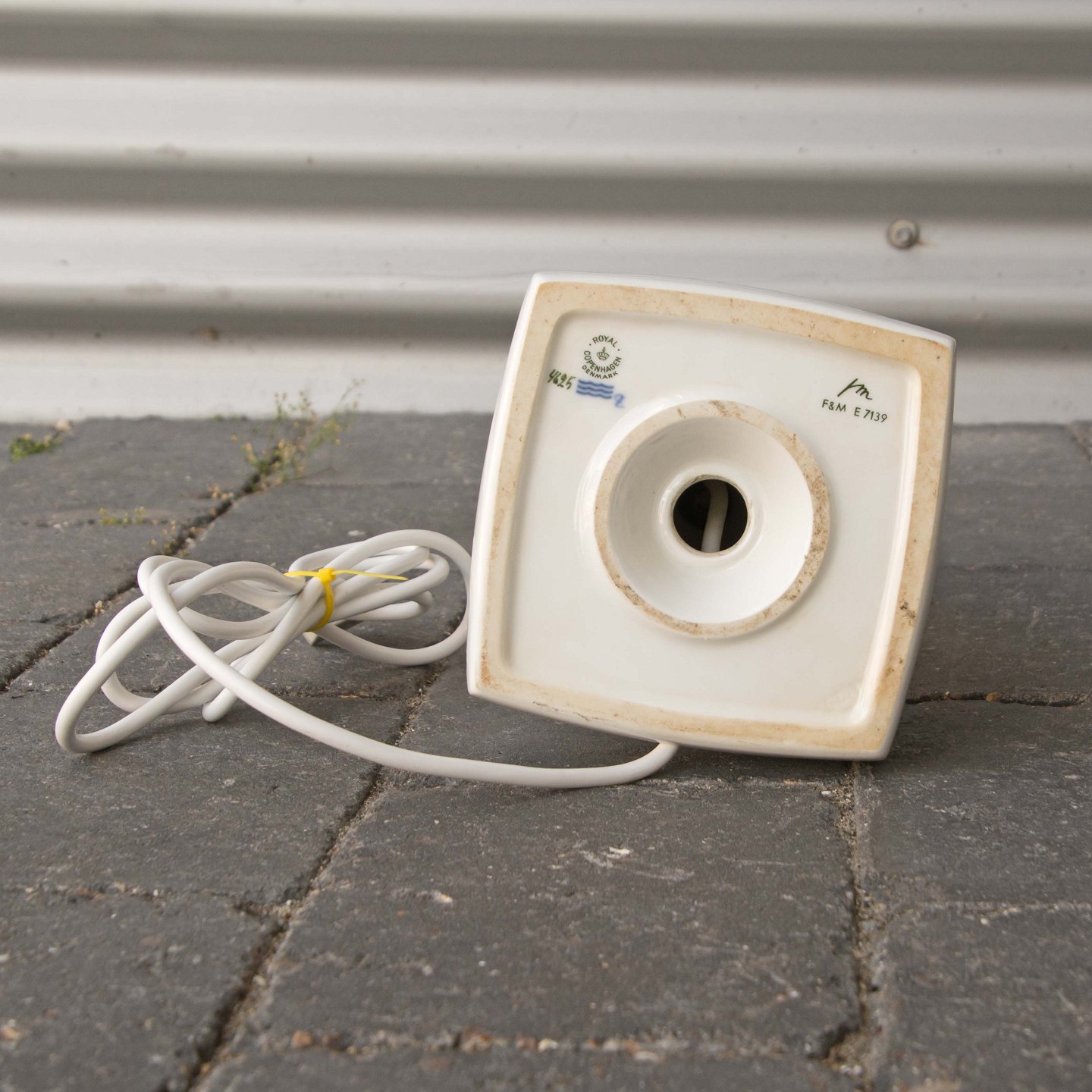 Bordlampe i porcelæn med kantet fod og enkelt udsmykning nr. 4625